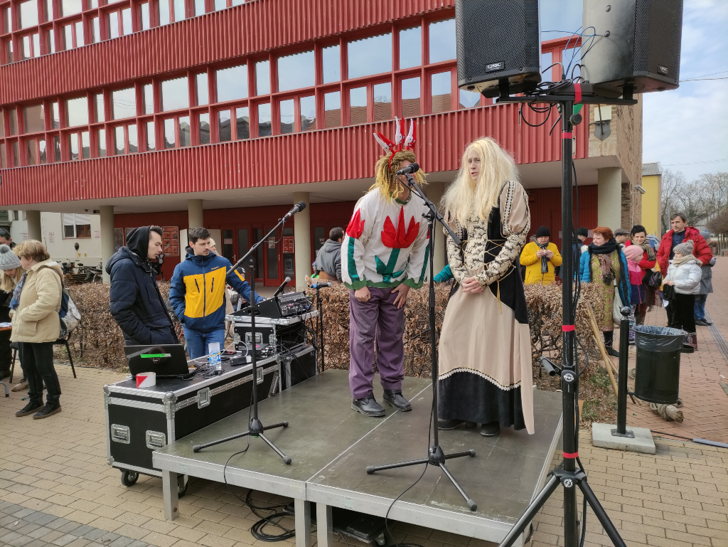 Persze a végül a kiszebábot is tűzre dobták a Bessenyei Ferenc Művelődési Központ előtt, százak szeme láttára.