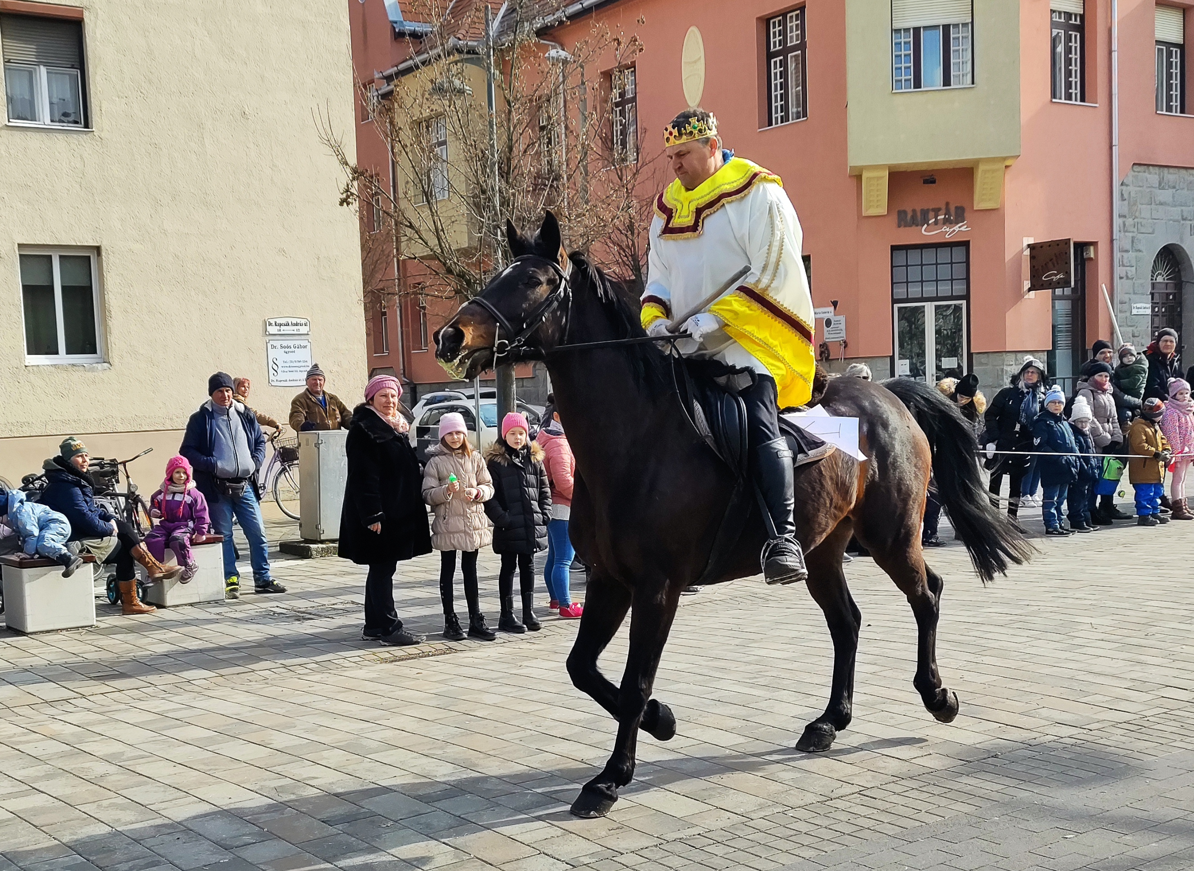 A tömeg egyre izgatottabbá vált már a Megtréfált Mátyás király című mesejáték közben is, hiszen pontosan délben megjelentek a jelmezekbe öltözött lovasok és kutyások, hogy felvonulásukkal egyik ámulatból a másikba ejtsék a nézőket. Akadt olyan, – főleg a kisebbek között – aki megijedt a boszorkányoktól és a halálfejektől, de akadt, aki kinevette őket.