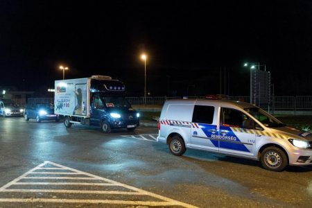 A 9750 adag vakcina Hegyeshalomtól rendőri biztosítással ment a Dél-Pesti Centrumkórházba. Holnap kezdődik ott az egészségügyi dolgozók oltása.