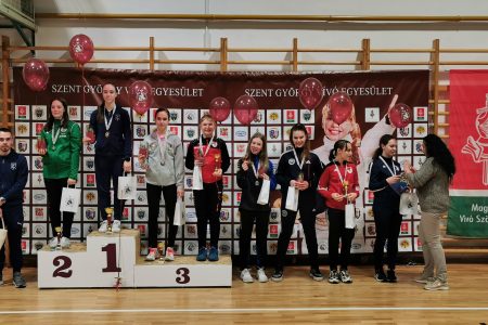 A nap második megmérettetése az újonc korosztályú lányok versenye volt. Spissák Dalma fantasztikus vívással kezdte meg a napot, amely kitartott egészen a legjobb 8-ig, ahol az 5. helyet szerezte meg. Dalmát követte Timár Bori, aki bejutott a legjobb 16 közé, ott pedig a 16. helyet szerezte meg. Timár Panni felversenyzett a nagyobbak között, de eredménye így is nagyon szép lett, hiszen 39-ként fejezte be versenyét.