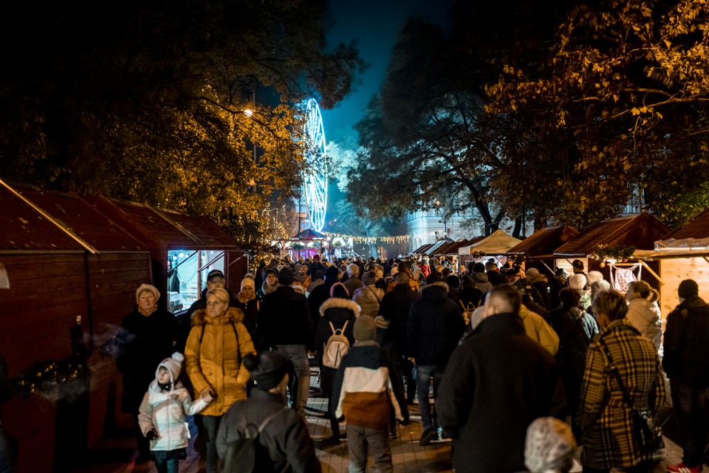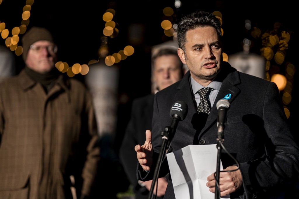 A Kossuth téri adventi koszorún Márki-Zay Péter gyújtotta meg a hitet jelképező első adventi gyertyát. A karácsonyi vásár is vasárnap kezdődött meg. Címlapfotó: Buday Dániel.