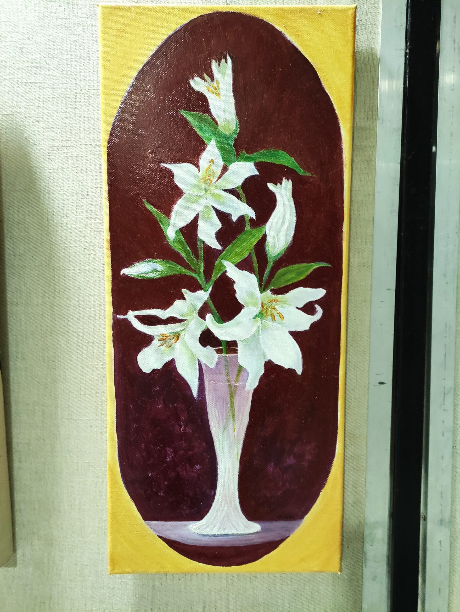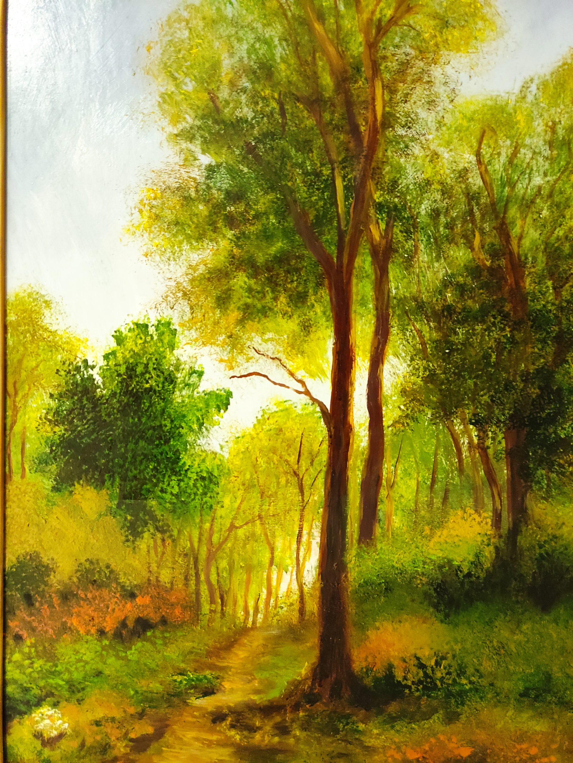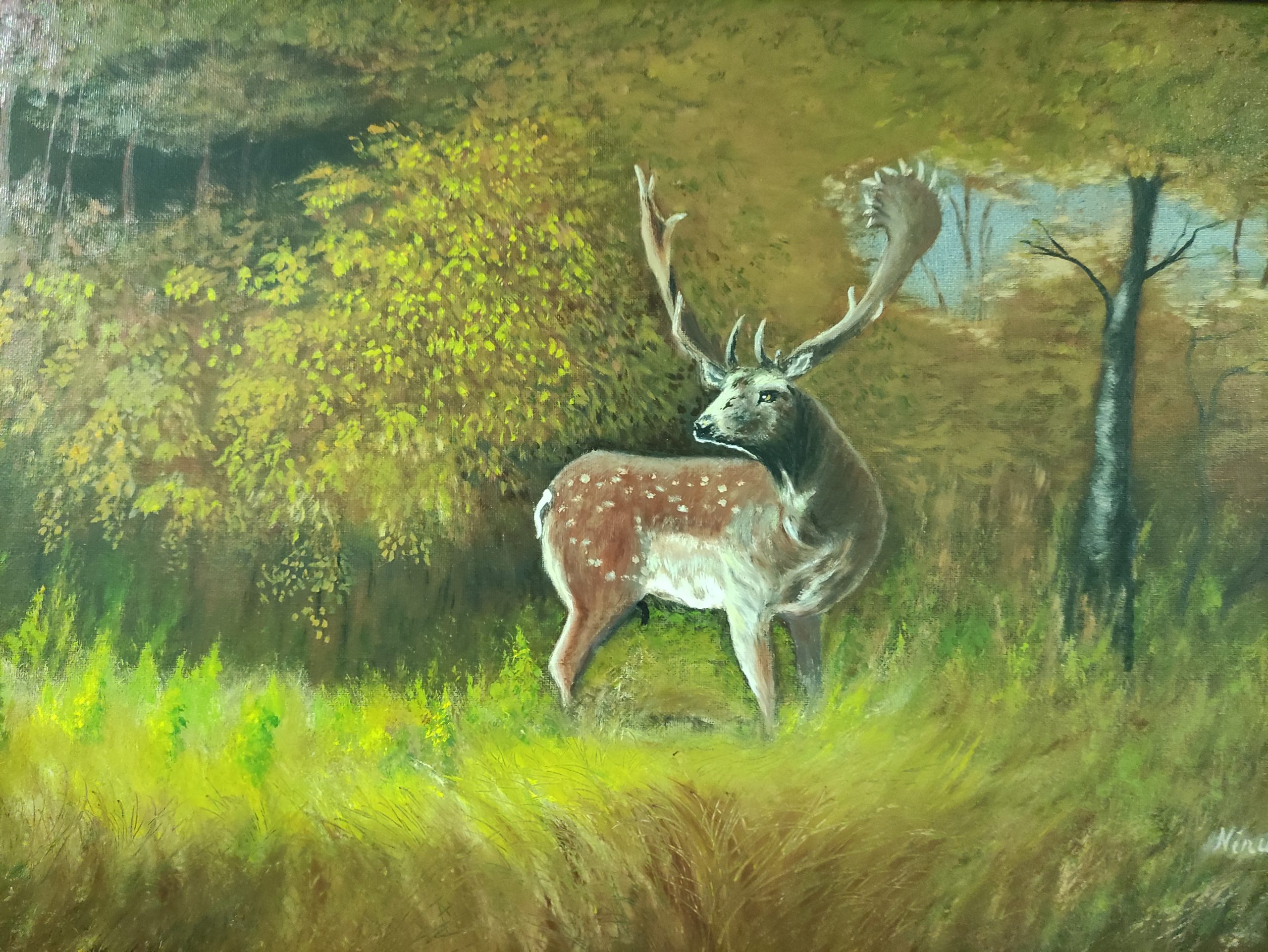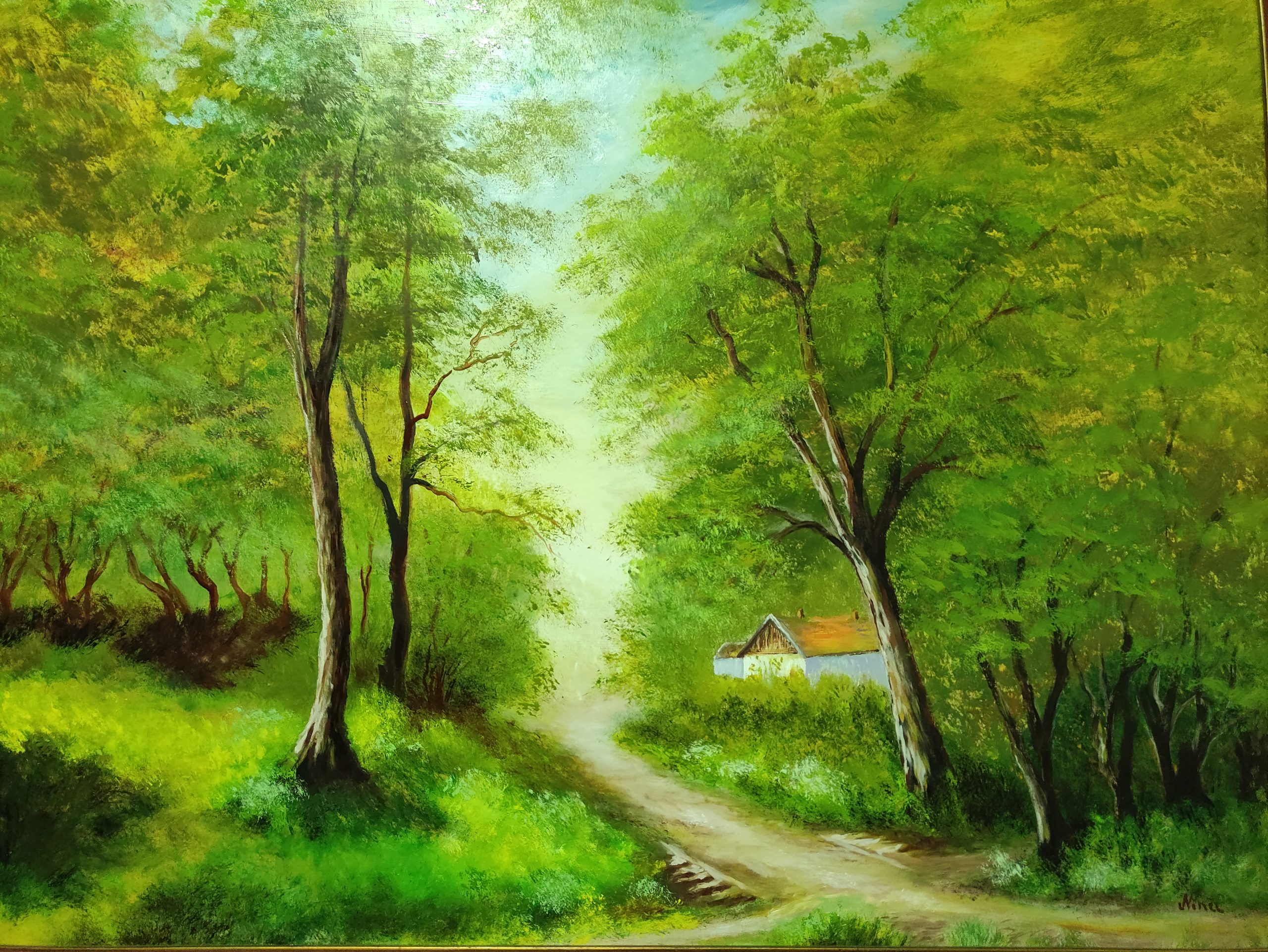 A 10 éve férjével a Nyugdíjas Lakóparkban élő alkotó a könyvek mellett számos hazai és külföldi képtárban gyarapította tudását. Van olyan képe, mely eredeti fotóját újságban látta, de a zöméhez személyes élmény fűzi. A mostani kiállítás anyaga az utóbbi fél évtized munkáiból áll össze.