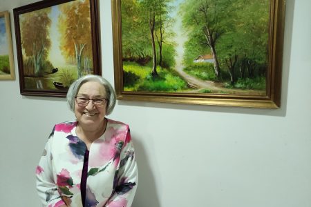 Három lábon áll, autodidakta módon tanult meg festeni, s szavalóversenyen is indult már Hamari Jánosné – akinek Megunhatatlan természet című kiállítása a Bessenyei Ferenc Művelődési Központban látható.