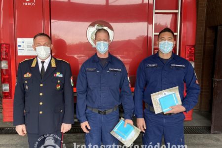 A szeptemberi istállótűznél nyújtott munka elismeréseként vett át oklevelet és emléktárgyat Lele Mátyás és Rácz Sándor, valamint a csongrádi Berkes Krisztián.