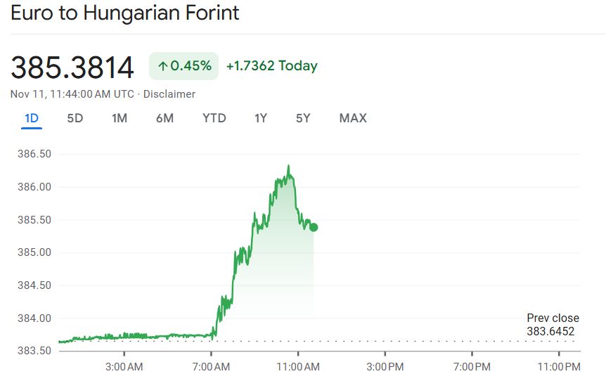 Ezt pedig – védőpajzstól függetlenül – nem tolerálták a piacok, a forint meredek esésnek indult. A reggeli 383-as szintekről 386 fölé gyengült a hazai fizetőeszköz az euróval szemben, ami napon belül 0,7 százalékos gyengülés.