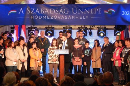 Márki-Zay Péter nem sokkal 8 óra után lépett a mikrofonhoz. – Nem csak megfélemlítés volt korábban a városban, hanem legyőztük a korrupciót is. Egy kutatás szerint a 2018-as 60%-os korrupciós mérőszámot mára 10% alá csökkentettük. Az egész országban példát mutatunk, hogy egy polgármester tud gyalog is járni, nem épít kastélyt, a lakásokat nem a kevesek között osztják szét, a reprezentációra nem költünk 120 milliót – kezdte beszédét.