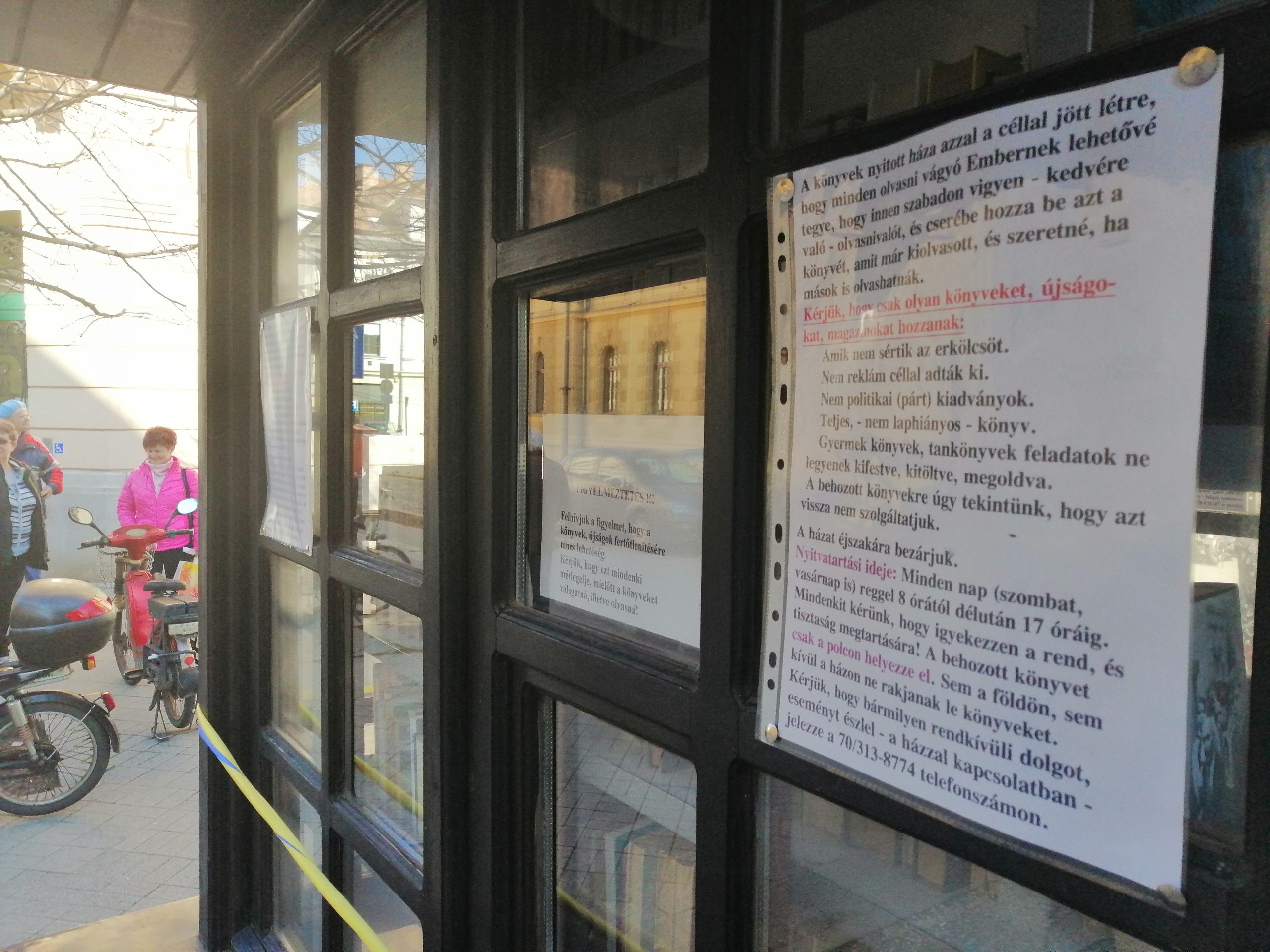 Kissné Urgyán Mária könyvtáros arról beszélt, hogy neki is nagyon sok könyve van otthon, amiket mindig sajnálna kidobni, ezért jó kezdeményezés, hogy akár el lehet ide hozni. Mint mondja, az elején többnyire régi könyvek lesznek, de azokban is sok okos gondolat van, később lesznek itt újabb könyvek, tartalmas magazinok és mesekönyvek is.