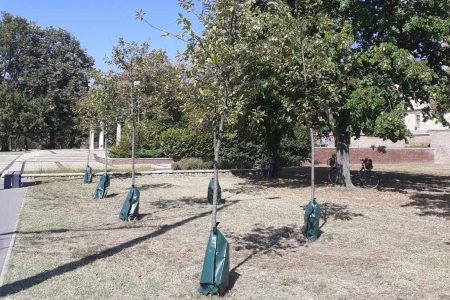 A tavalyihoz hasonló idei száraz és aszályos nyár, – amely már a klímaváltozás egyik legszembeötlőbb jelensége, – rendkívüli mértékben megviseli a városban található faállományt. A frissen ültetett csemetefák mellé öntözőzsákot helyeztek ki, hogy ezzel is segítsék azok fejlődését.