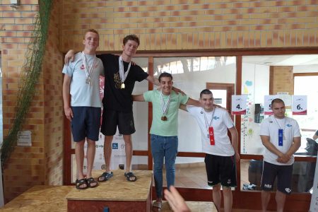 A Hódok speciális úszója, Rauch Róbert (a képen balról a második) két országos versenyen is kiválóan teljesített. Fotó: Hód Úszó SE/Facebook.