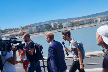 A képviselő azt is rögzítette, ahogy Hollik István menekül a sajtó és a tüntetők kérdései elől: