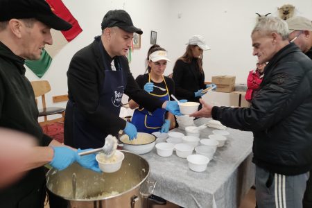 Ma már a negyvenhetedik alkalommal osztott ételt a Mindenki Magyarországa Mozgalom Kossuth Köre és Tiszta Vásárhelyért Egyesület önkéntesek segítségével és az adományozóknak köszönhetően. A Jókai utcai csúcsi Olvasókörnél ez alkalommal is Czeller Éva forgatta főszakácsként a fakanalat, hogy megfőjön a tészta, melyet sajttal és tejföllel és – ahogy szokás – pörccel összekeverve osztott ki Márki-Zay Péter és csapata. Desszertként croissant-t és szőlőt is kapott mindenki, az utóbbit Momó, azaz Szabó Margit ajánlotta fel.
