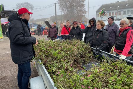 Ma reggel 8 órakor már hosszú sorban várták a vásárhelyiek, hogy vihessenek azokból a muskátlitövekből, amelyeket a polgármesteri hivatal szervezésében osztottak.