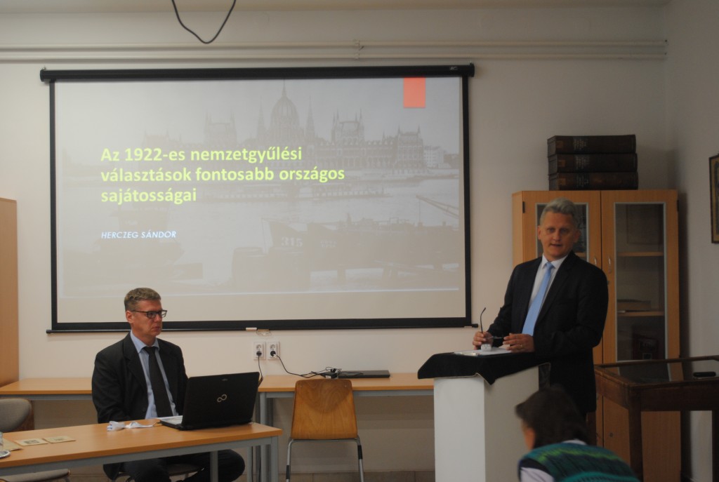 Az érdeklődők meghallgathatták Herczeg Sándor politológus: Az 1922-es nemzetigyűlési választások fontosabb országos sajátosságai, Zeman Ferenc levéltáros: A hódmezővásárhelyi nemzetgyűlési választások 1922-ben. A rendes és időközi választás eredményei, tanulságai, illetve Presztóczki Zoltán: Mi történt velük? Az1922-es nemzetgyűlési választások győzteseinek és néhány jelöltjének egyéni sorsa című előadásokat.