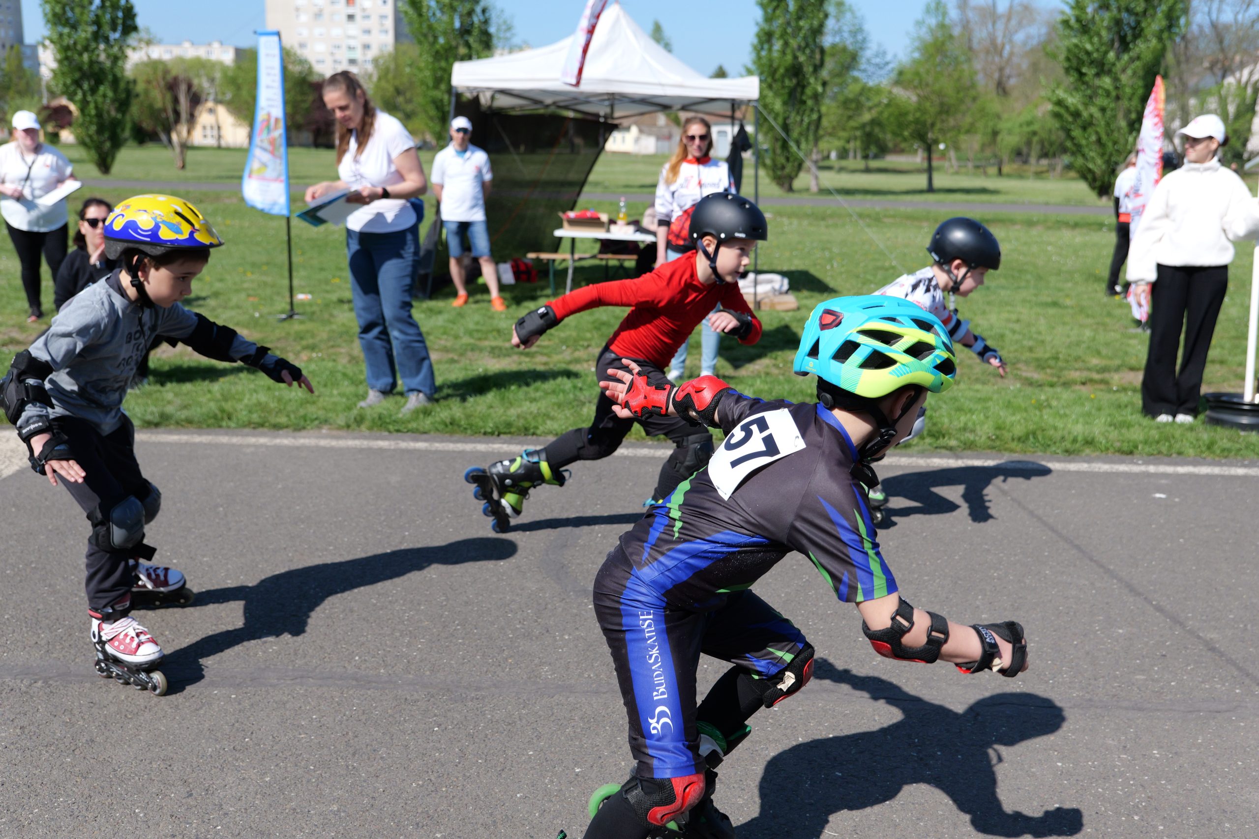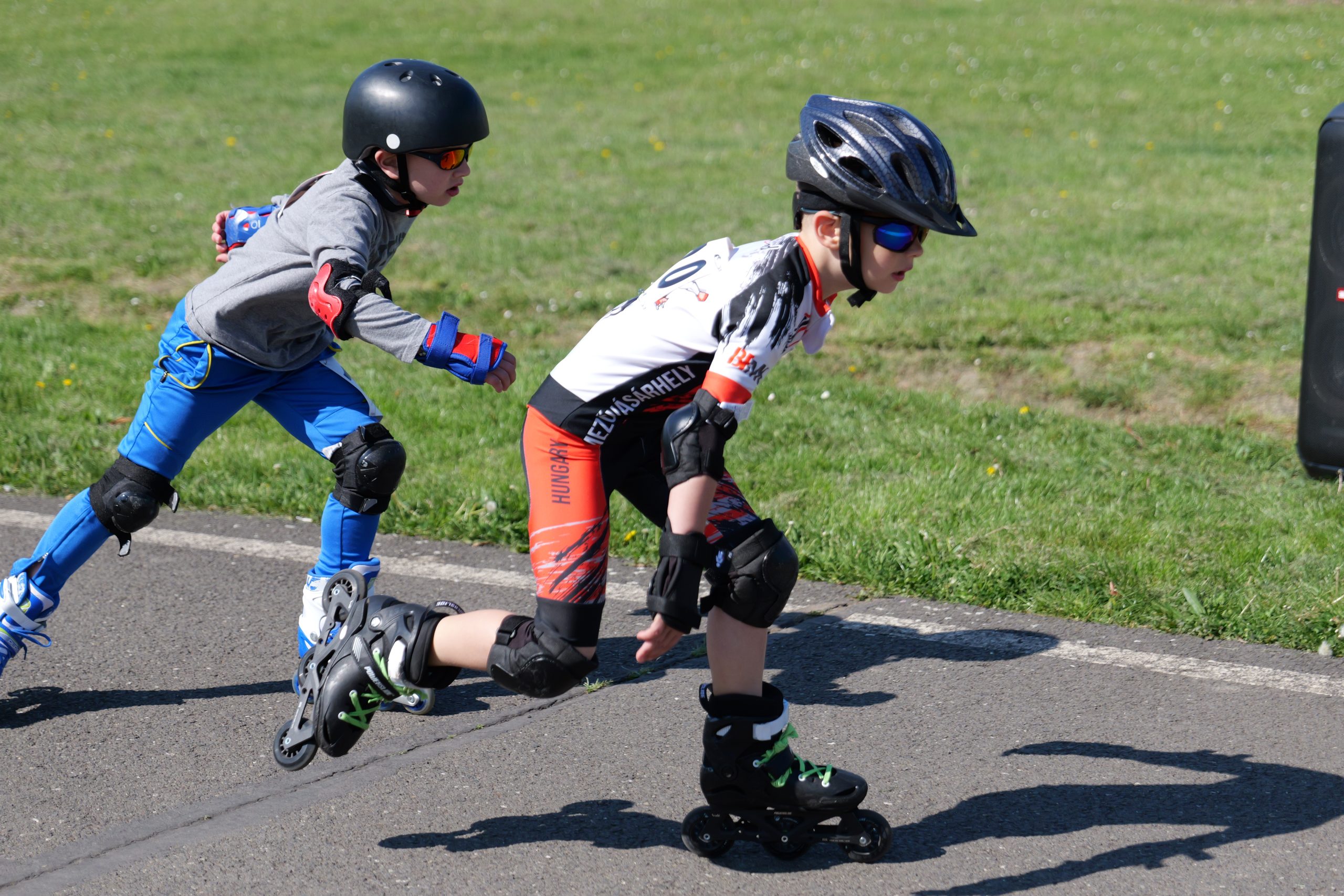 – Ez már a második év, hogy görkoriztok, amit meg azért kezdtem el, mert azóta jártok jégkorongra. Ezt meg azért kezdtem el, mert abbahagytam az úszást – világított rá az általa művelt sportágak egymásba kapcsolódásának okaiba Nagy Sándor, a Németh László Gimnázium és Általános Iskola alsós diákja. Hozzátette, két éve versenyzik, és az a célja, hogy nyerjen. – Most is azért jöttem, mert minden versenyen szeretnék részt venni, és azért küzdök, hogy egyre jobb legyek.