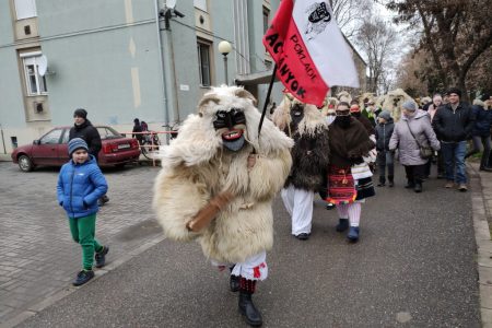 Százak toporogtak ma kora délután a Csúcsi Olvasókör előtt, illetve a közelében, hogy végre megpillantsák a rémítő maszkokba és bundába öltözött mohácsi busókat. A gyerekek kezében folyamatosan csattogtak a kereplők, a nagyobbak mobiltelefonnal készültek fotókat csinálni a maszkosokról. Kisvártatva fel is tűntek a busók, s sokak meglepetésére lányok-asszonyok is voltak köztük, egyikük dudát fújt, a másikuk babakocsit tolt.