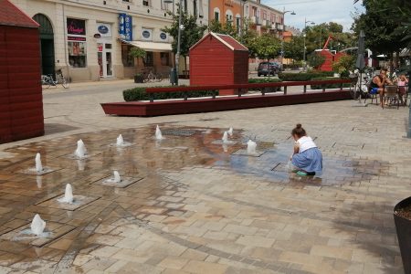 Korábban írtunk róla, immár kilenc szökőkút és négy párakapu mellett végre a csobogók is üzemelnek a sétálóutcán – a gyerekek nagy örömére, ahogy a képen is látható. Nemcsak ezt hozta rendbe az önkormányzat, de újra működik a BFMK melletti ivókút is. Az Almáskert mögötti kútnál csőtörés volt, ott még dolgoznak, de napokon belül az is újra használhatóvá válik.