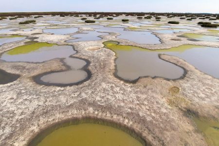 A nyugati meder közepén van egy érdekes, nagyobb területet elfoglaló rész, melyben 30 centiméternél is magasabb, homogén, fehér felszínű kiemelkedések vannak. A nemrég érkezett csapadék hatására a kiemelkedő részek között megállt a víz, kis tócsákat, foltokat alkotva. Amikor süt a nap, akkor ezek a vízfelületek is különleges fényben díszlenek.