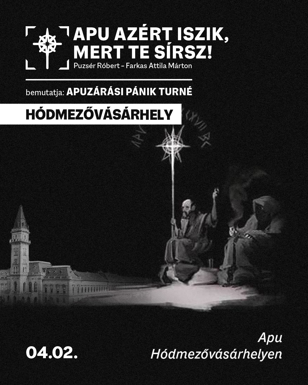 Puzsér Róbert és Farkas Attila Márton (FAM) legendás, immár másfél évtizede futó kocsmashowja, az Apu azért iszik, mert te sírsz! április elején városunkban folytatja az Apuzárási pánik turnéját.