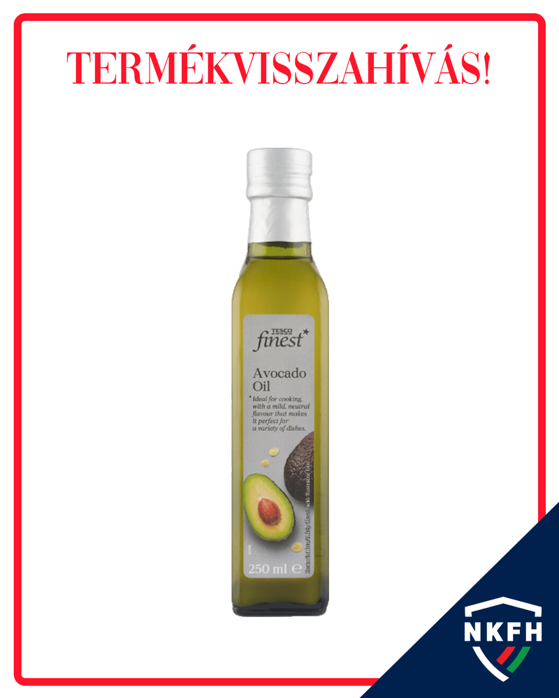 Visszahívta a Tesco-Global Áruházak Zrt. az általa forgalmazott Tesco Finest Avokádóolaj 250 ml elnevezésű terméket annak határérték feletti glicidol tartalma miatt – közölte ma, szerdán a Nemzeti Kereskedelmi és Fogyasztóvédelmi Hatóság.