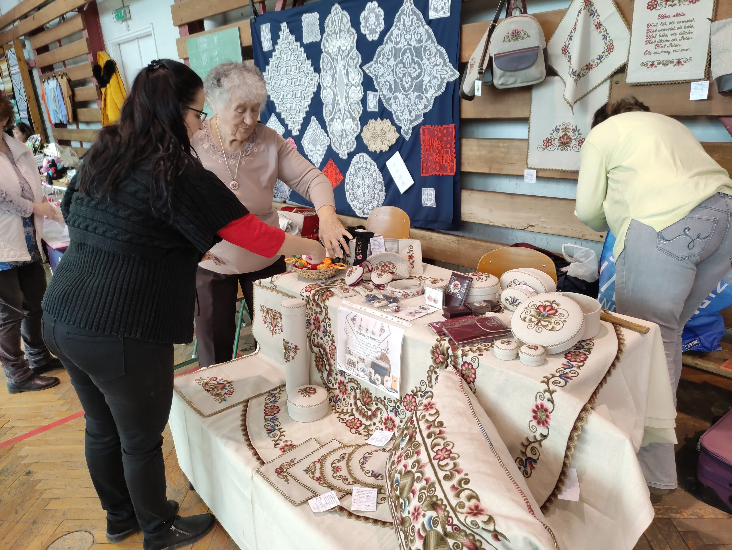 Persze voltak nem ehető dogok, népi szőttesek, szőnyegek és aki még nem látott vásárhelyi hímzést, az gyönyörködhetett a felhozatal gazdagságban.
