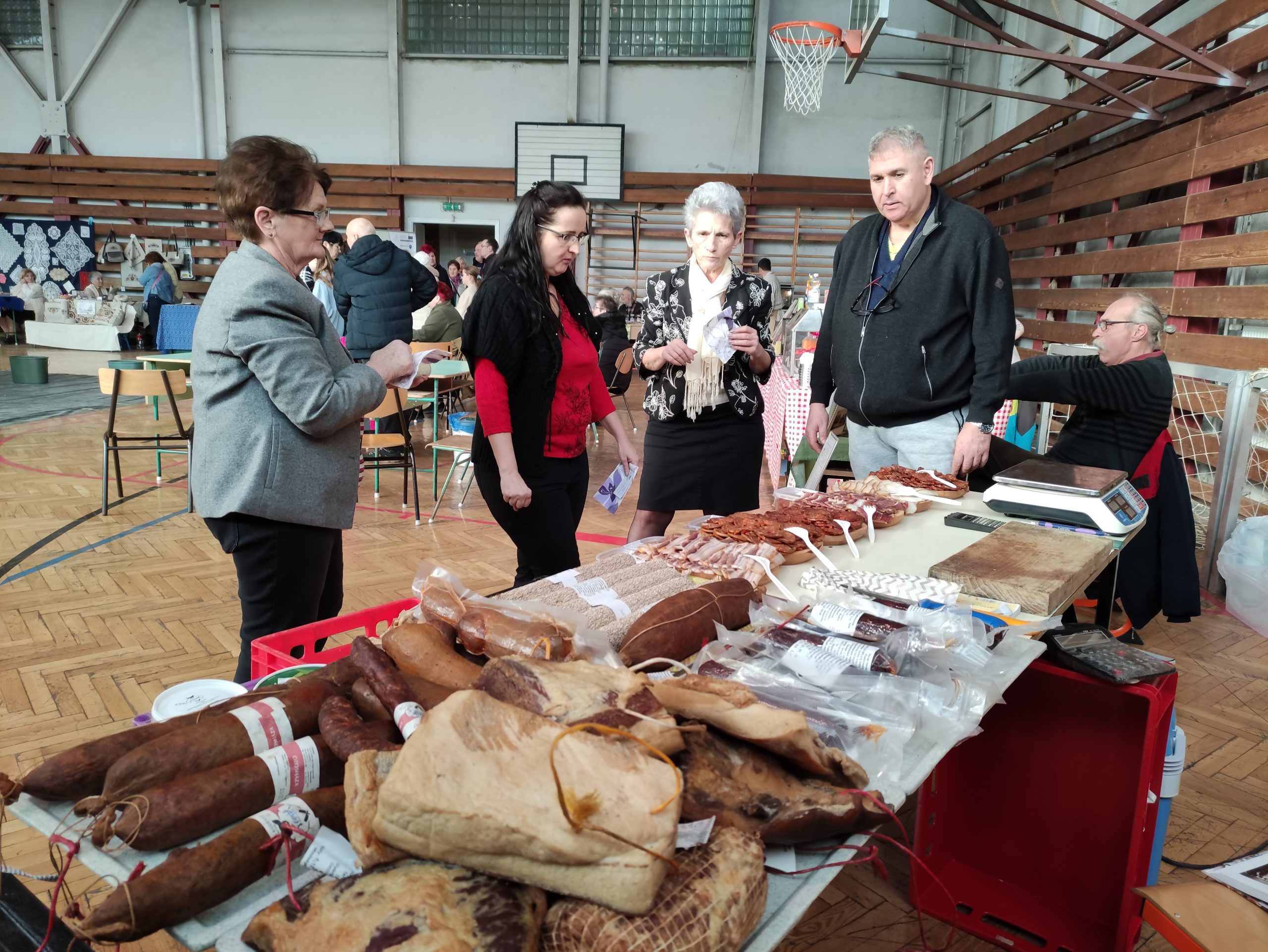 Szombaton kora reggel alig nyitotta ki a kapuját a Gregus Technikum és Szakképző Iskola Árpád utcai tornaterme, máris szép számú gyerek és szülő csodálkozott rá a kiállított finomságokra, melyek a szárított gombáktól a perecig, a vásárhelyi túrós lepénytől a helyben is megkóstolható szörpökön át egész a disznótoros finomságokig tartottak.