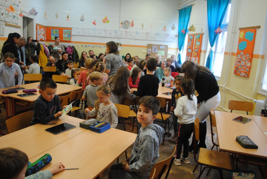 Nem ő volt az egyetlen szülő, aki elvitte nagycsoportos gyermekét az iskolai nyílt napra, melyen a gyerekek mindkét első osztályt megismerték, ajándékot kaptak és megismerkedtek leendő elsős tanító nénijükkel. A negyedikesek pedig bábokkal kápráztatták el a kicsiket.