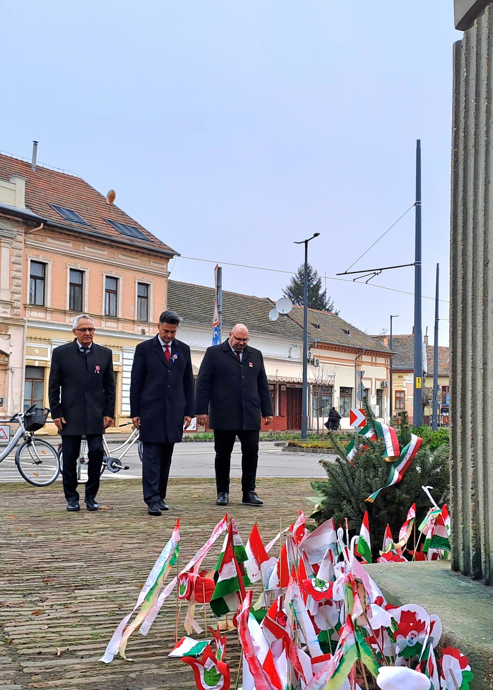 Az alpolgármester felidézte az 1848. március 15-i történelmi eseményeket, amikor is Petőfi a Pilvax kávéházban elszavalta a Nemzeti dalt, majd az egész városban kihirdette a 12 pontot.