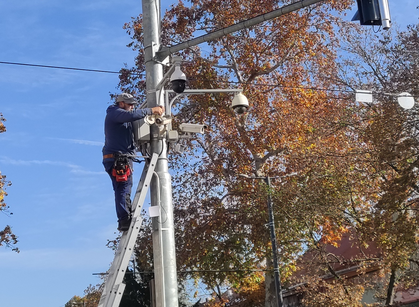 Vásárhelyen sokszor mindenféle következmények nélkül marad, ha valaki beletolat vagy meghúz egy parkoló autót, majd markába röhögve angolosan távozik, miután térfigyelő kamera van, csak éppen nem működik. Ennek lesz vége hamarosan, hiszen 80 új, korszerű és működő kamerát telepítenek a városban. A képen: kameracsere az Emlékpontnál.