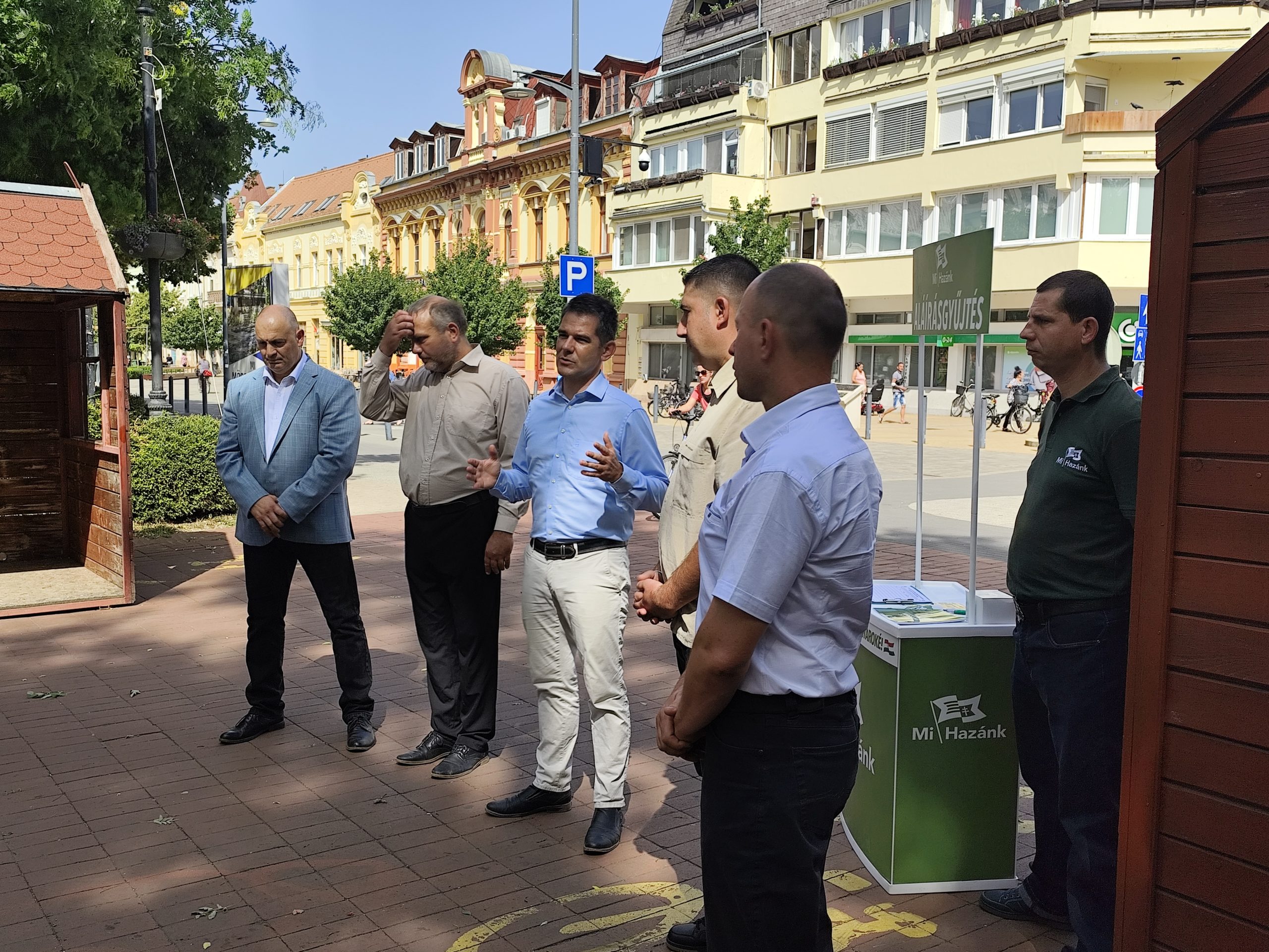 Miután sikerült az év – feltehetően – utolsó meleg napjára, ráadásul az OTP előtti sínkanyar mellé szervezni a Mi Hazánk pénteki hódmezővásárhelyi utcafórumát, Novák Elődék inkább a Kossuth téri bódésorok közé költöztették át a rendezvényt. Ott legalább van árnyék.