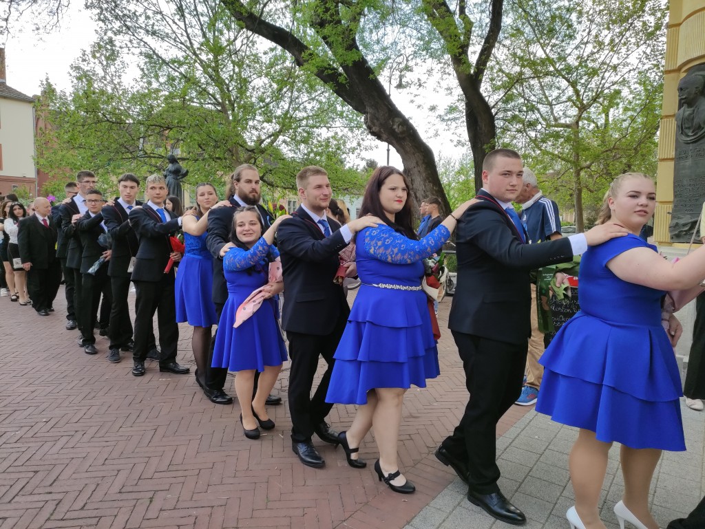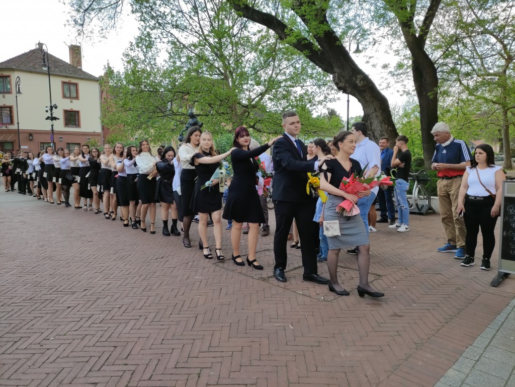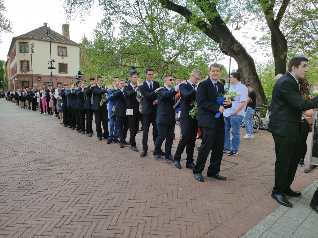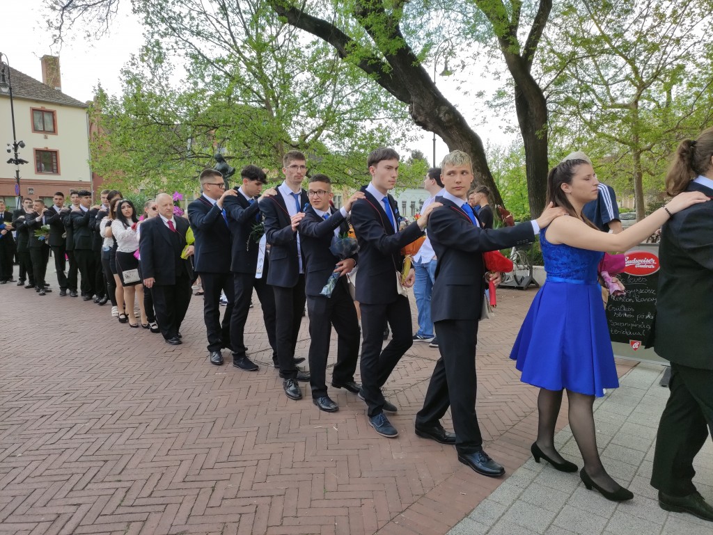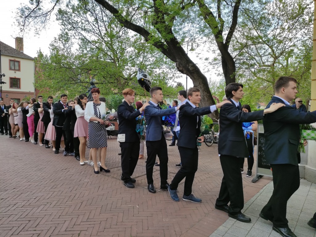 Az intézmény végzős osztályai igazgatói felvezetésével, a diáktársaik, illetve szüleik, rokonaik sorfala közt vonultak át a Corvin Mátyás Technikum és Szakképző Iskola Városház utcai épületéből a hagyományok szerint a Fekete Sas báltermébe.