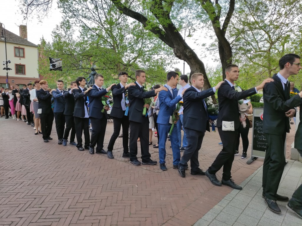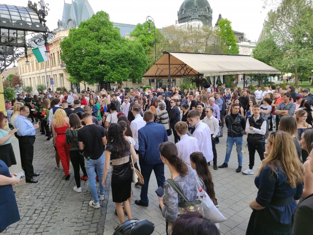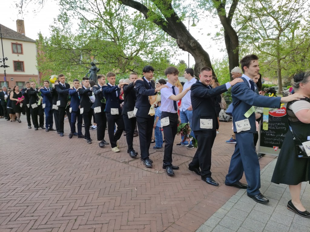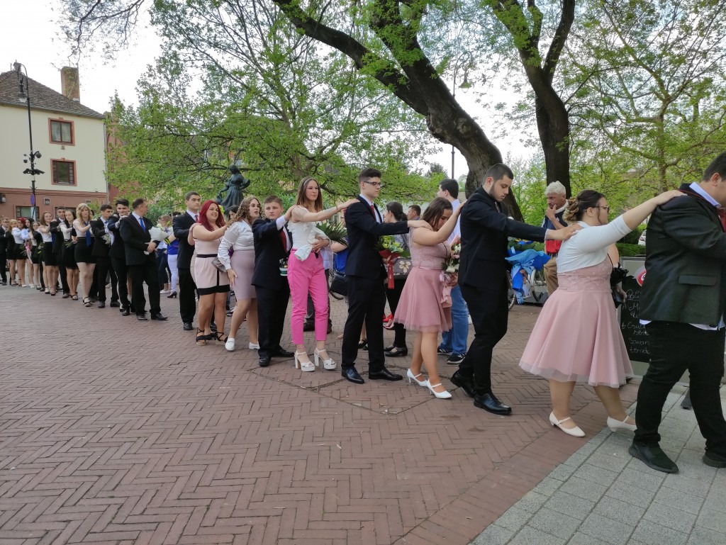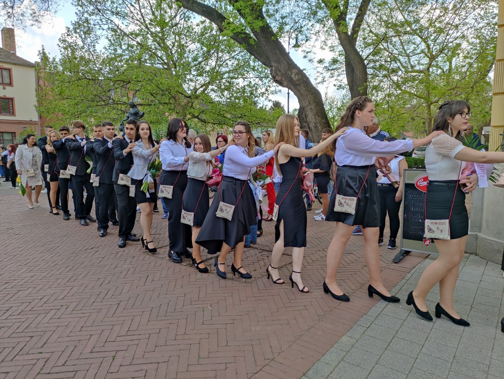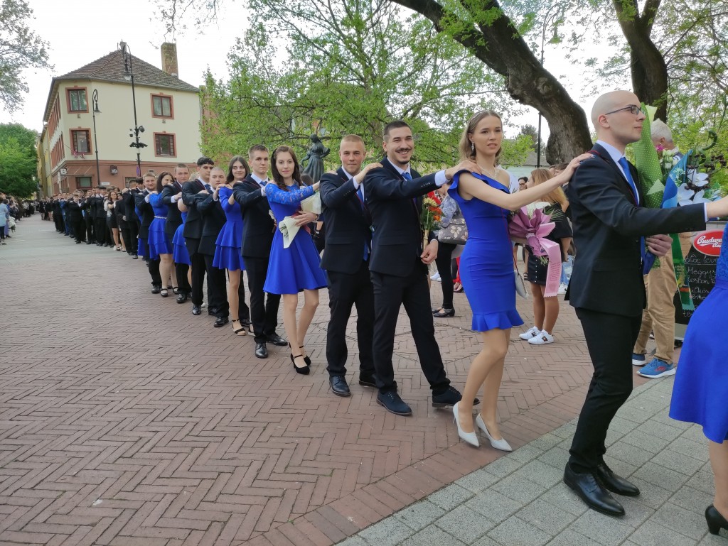 Az intézmény végzős osztályai igazgatói felvezetésével, a diáktársaik, illetve szüleik, rokonaik sorfala közt vonultak át a Corvin Mátyás Technikum és Szakképző Iskola Városház utcai épületéből a hagyományok szerint a Fekete Sas báltermébe.