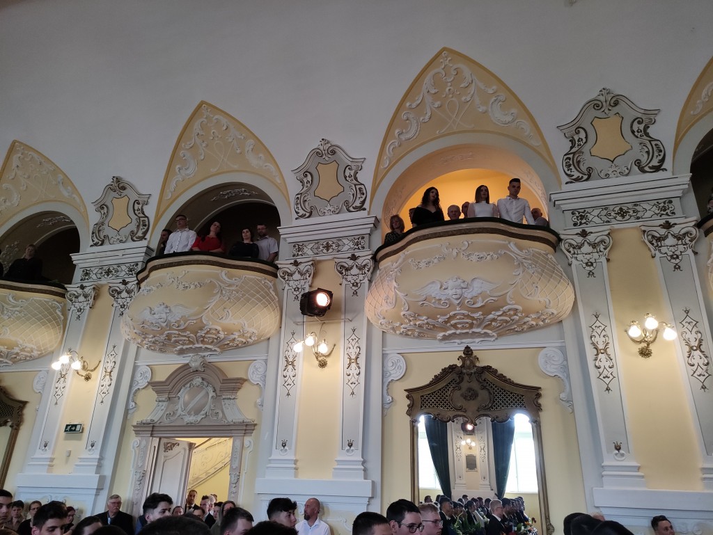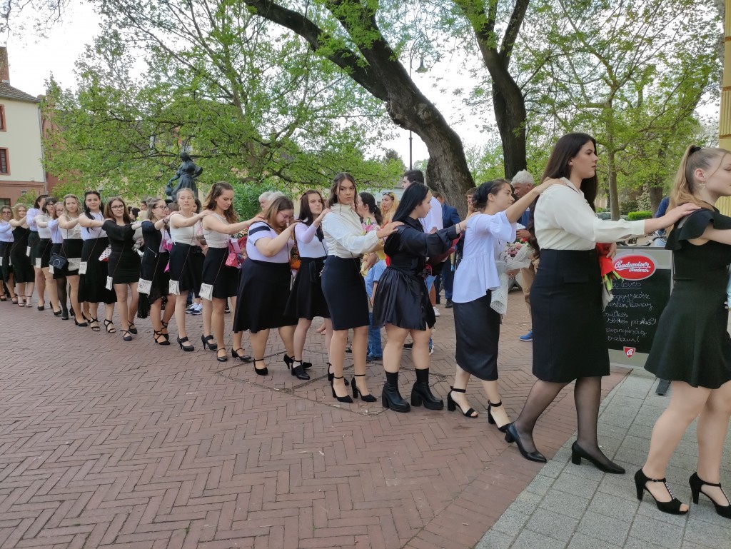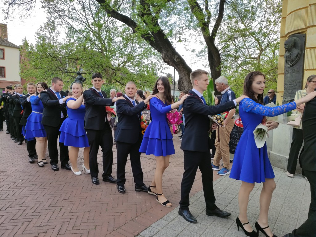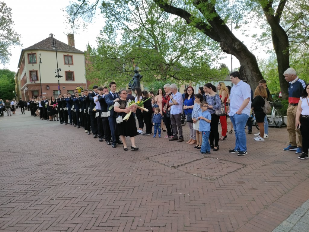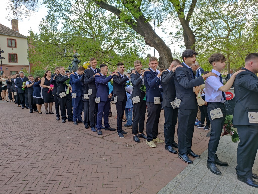 Az intézmény végzős osztályai igazgatói felvezetésével, a diáktársaik, illetve szüleik, rokonaik sorfala közt vonultak át a Corvin Mátyás Technikum és Szakképző Iskola Városház utcai épületéből a hagyományok szerint a Fekete Sas báltermébe.