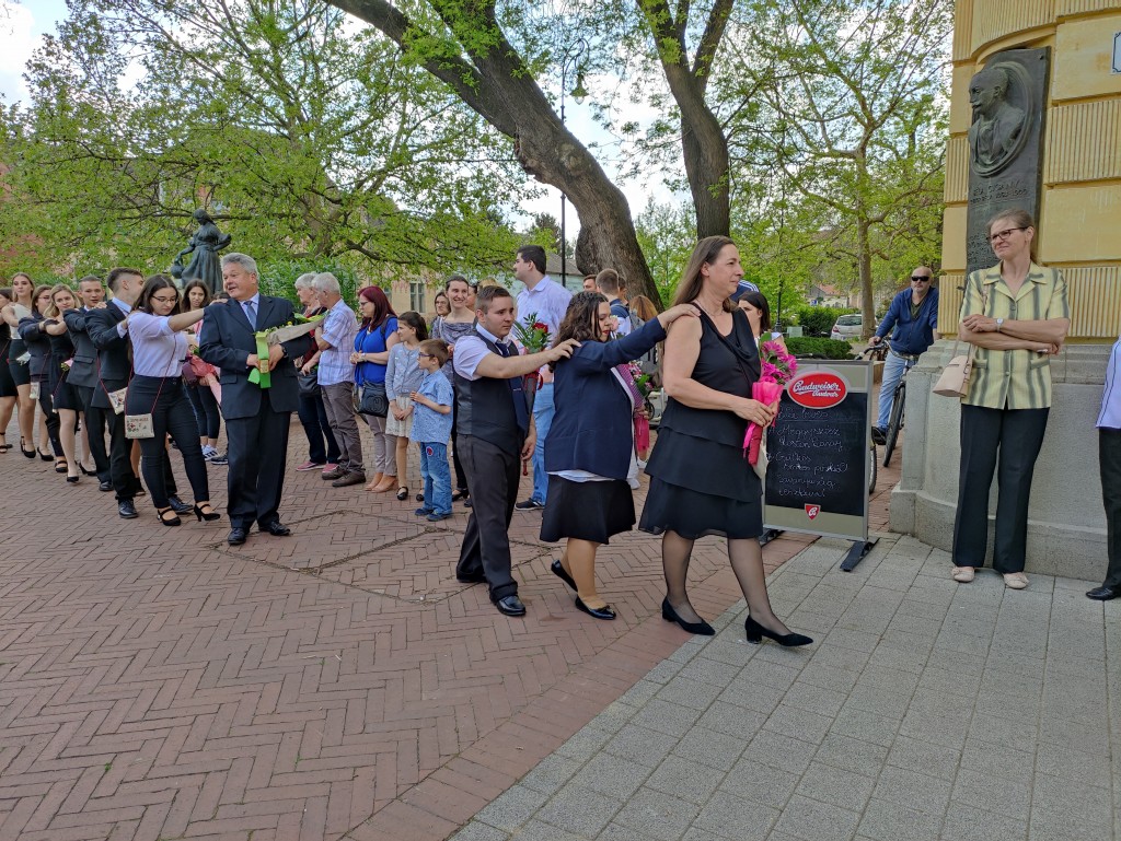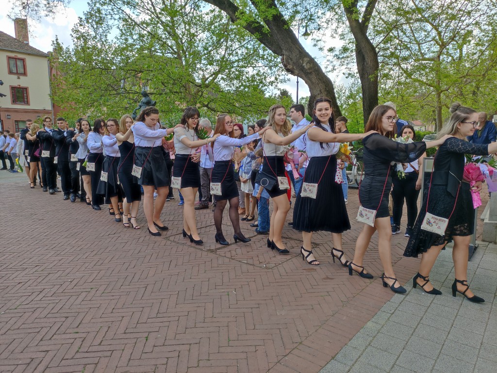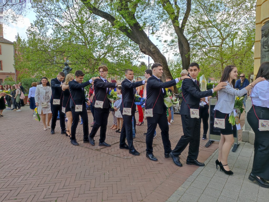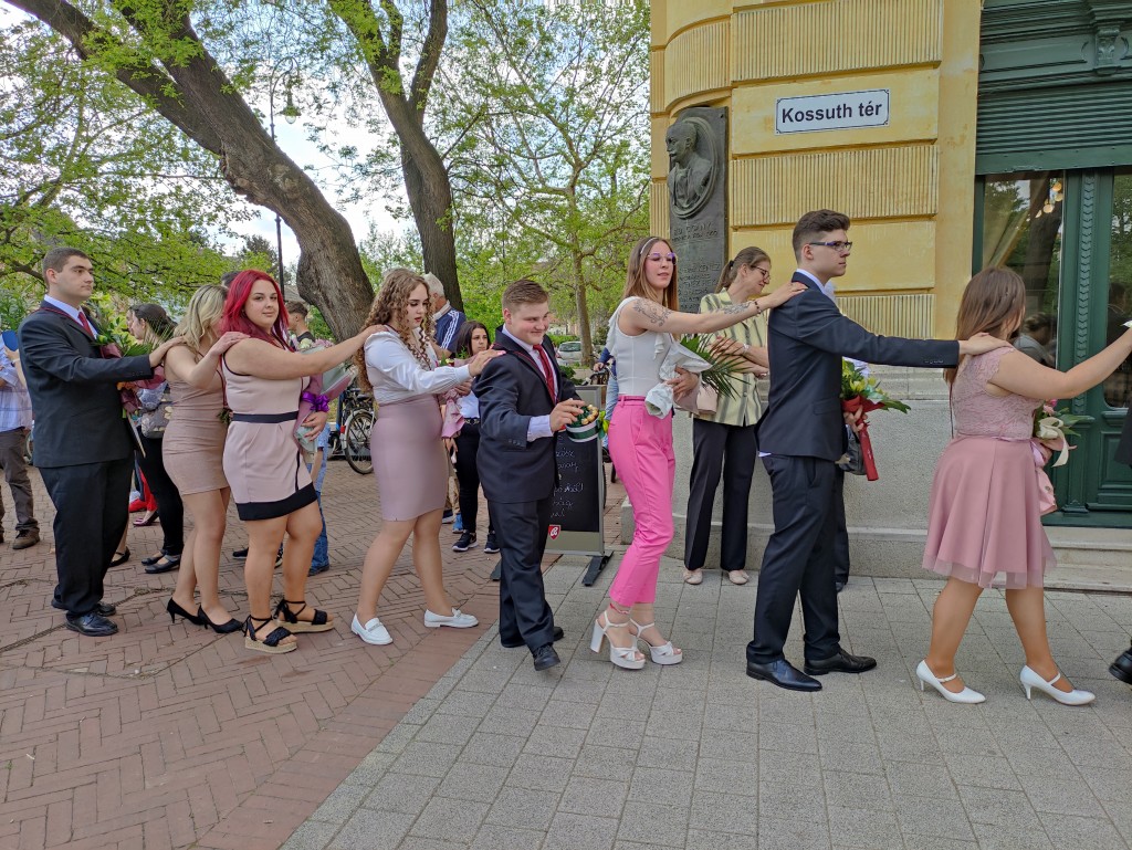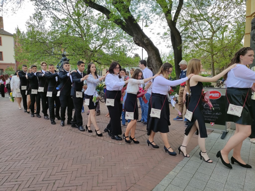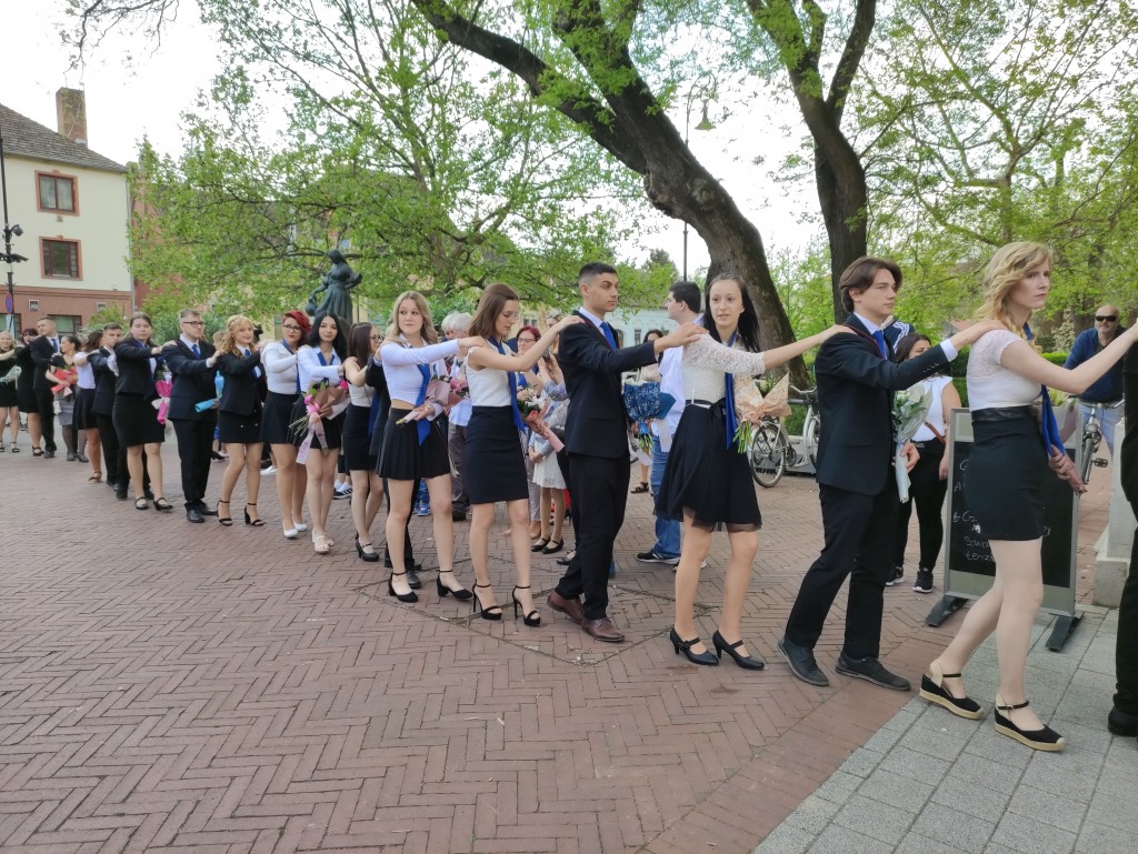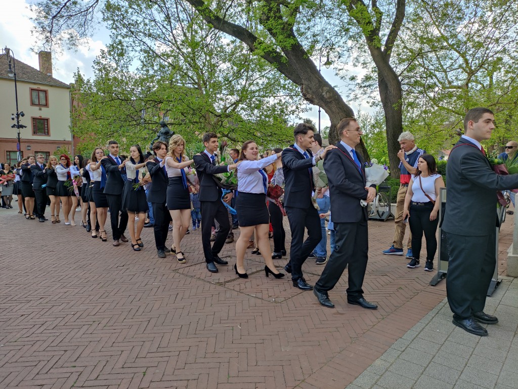 – Ne feledkezzetek meg arról, hogy a szakképző vizsga után érettségire és technikusi vizsgára is visszavárunk benneteket mondta. A Nagy utazás című Presser dal gitárduós változatával színesített ünnepségen az alsós diákok nevében is elbúcsúztatták a ballagókat, akik a suliban maradóktól is elköszöntek.