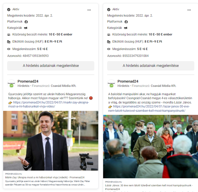 A Facebookon ma is, egy nappal a választás előtt előjön egy-egy megyei hirdetés, például a Délmagyaré, a Promenádé. Ne legyen kétségük, kiket reklámoznak, illetve kiket ócsárolnak.