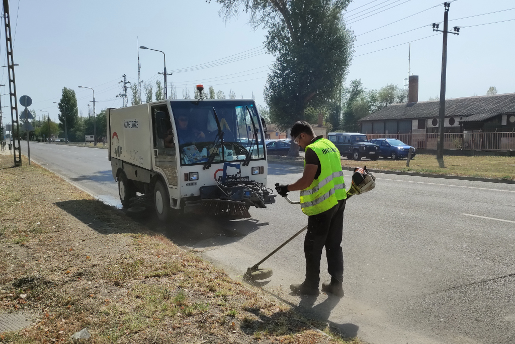 A HMSZ munkatársai előbb benzines fűkaszával vágták le a kerékpárút és a közút közötti növényzetet, az Erzsébet úton, majd a kerékpárutat seprűskocsi tisztította meg, egy másik pedig az útpadkán tette ugyanezt. A városi cég, az idén is megtette ezt, hogy eltávolítsa az ipartelepre járók bicikligumijainak legfőbb ellenségét. A királydinnye, melyet Petőfi is megénekelt Alföld című versében ugyanis nagy számban nő a Széchenyi tértől az Erzsébeti útig, s aki a termésébe egyszer is belelépett, vagy belebiciklizett, az örök életre megjegyezte magának.