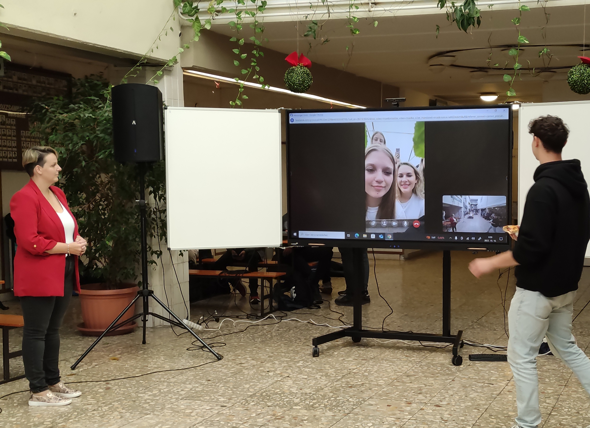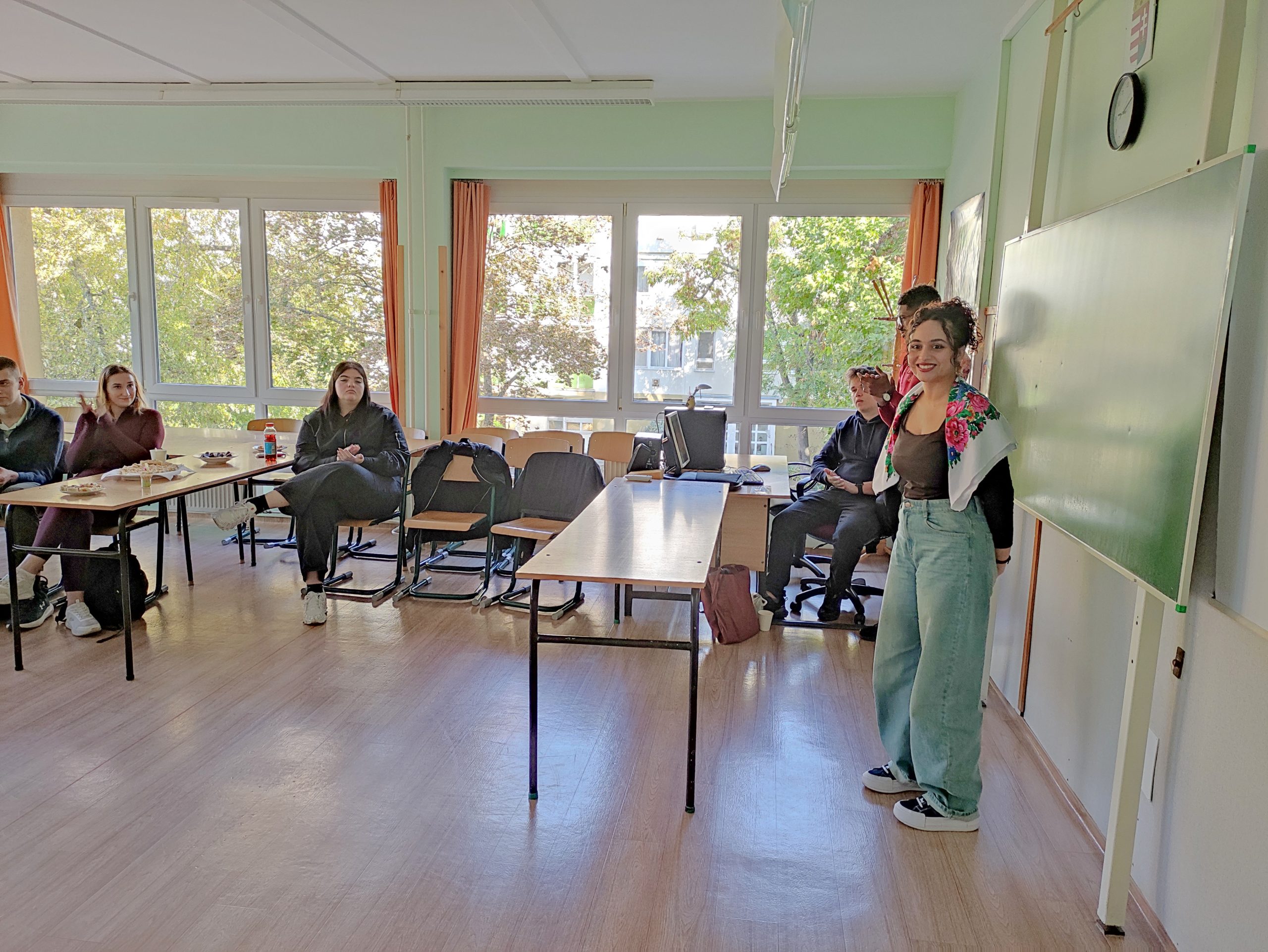 – Ebben a tanévben három diákcsoportunk járt külföldön az Erasmus program keretében. Kettő már hazaérkezett, egy pedig még Görögországban tartózkodik – ők azok, akik az aulában látható nagy képernyőn élőben jelentkeztek be. Egy másik csoportunk tavasszal utazik majd külföldre, emellett az egyik diákunk Olaszországban, a másik pedig Görögországban vesz részt egyéni programban. De nemcsak tanulóink szereznek külföldi tapasztalatokat az Erasmusnak köszönhetően: az egyik kollégánk jelenleg Barcelonában tartózkodik, és a közeljövőben többen is kiutaznak majd. 2019-ben kezdtünk pályázni a program keretében, igaz, akkor még kisebb létszámmal. A jelenlegi, 2021–2027-es időszakban azonban már nagyobb léptékben gondolkodunk: egyre több csoporttal tudunk külföldre utazni, és ez az első tanév, amikor az egyéni Erasmus-utakra is pályáztunk a 18 év feletti diákjaink számára – tette hozzá az igazgató, aki elmondta, hogy az iskola mintegy 230 tanulóval működik.