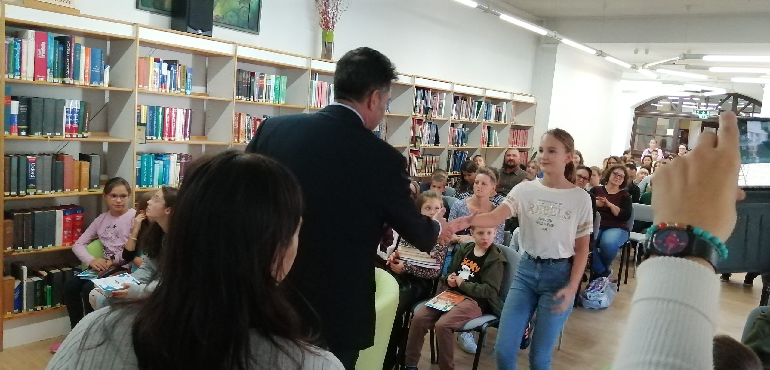 – Élvezetes olvasni, mert amit olvasol, abban el tudsz merülni. Engem lenyugtat! Szeretem az állatos könyveket, a történelmi könyveket. Minden író könyveit szívesen olvasom, de Nyulász Péterét a leginkább, nagyon jók a sztorijai – osztotta meg velünk olvasási tapasztalatát Albert Bence, a Varga Tamás Általános Iskola negyedikes kisdiákja, aki különdíjat kapott a mostani eseményen.