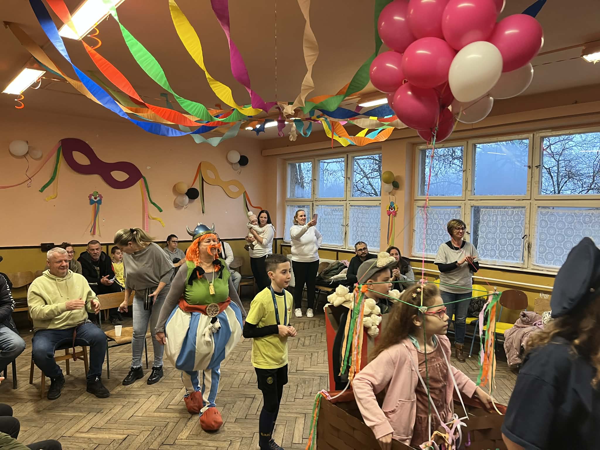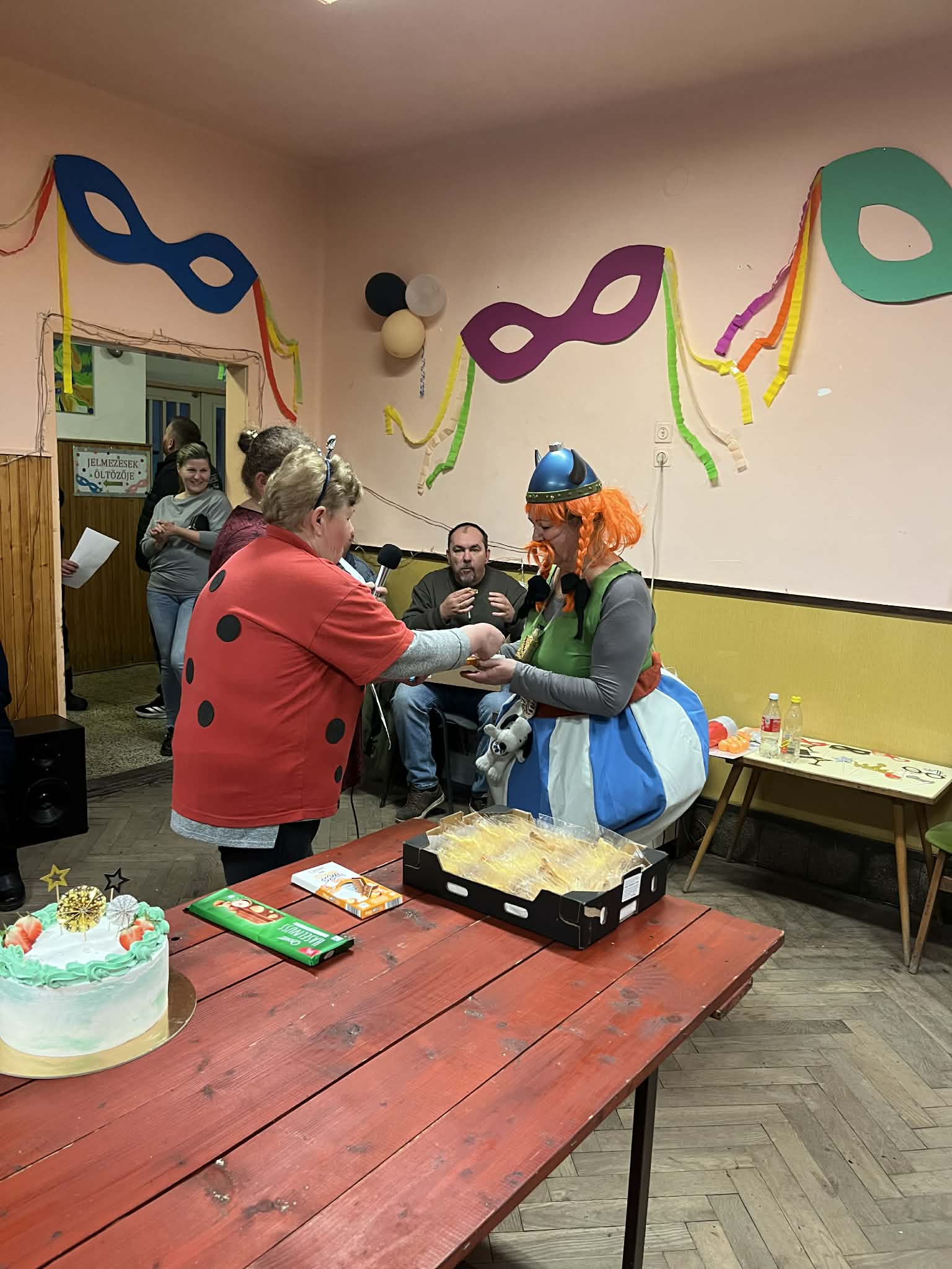 A tavaly helyiekből alakult közösség most az iskola épületében gyűjtötte össze a környék apraját-nagyját, hogy együtt ünnepeljék a farsangot. A mintegy ötven résztvevő között egymást érték a kreatív jelmezek: huszonhatan egyéni maskarában érkeztek, de három csoportos produkció is színesítette a programot. A szervezők gondoskodtak róla, hogy senki se maradjon elismerés nélkül, így minden jelmezes díjat kapott, a fődíj pedig egy ínycsiklandó torta volt.