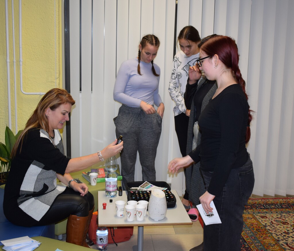Az „intim sarok” diszkrét, mégis információgazdag beszélgetésekkel segítette a diákokat az érzékenyebb témák körüli bizonytalanságaik feloldásában, míg a Doterra olajok bemutatója természetes megoldásokat kínált a fizikai és érzelmi egyensúly megőrzéséhez.