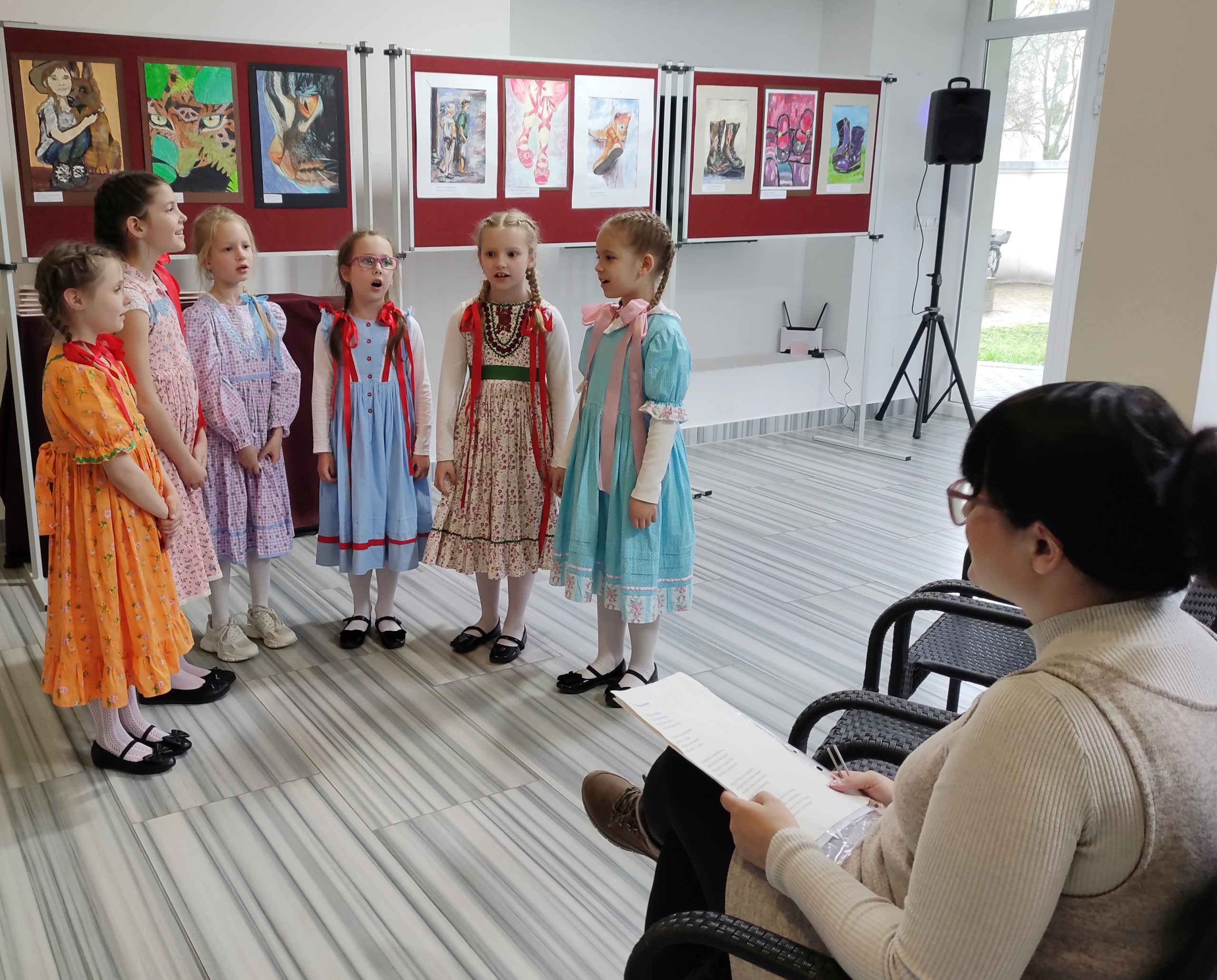 – Eredetileg szabadtérre terveztük a mai rendezvényt, hiszen a népdalokat régen nagyon sokszor szabadtéren adták elő: az emberek munka közben énekeltek, leültek a ház előtt, dolgozgattak, és közben daloltak. Az időjárás azonban nem engedte, így bent tartjuk meg a mai programot, hiszen itt működik a képzőművészeti szakos tanulók kihelyezett tagozata, a műtermünkben 12 tanuló készíthet képzőművészeti alkotásokat, főként festményeket és grafikákat. Az előtérben rendszeresen tartunk kisebb rendezvényeket, hangversenyeket és kiállításokat, ahogy ezt is – mondta Vágó János, a Péczely igazgatója.