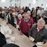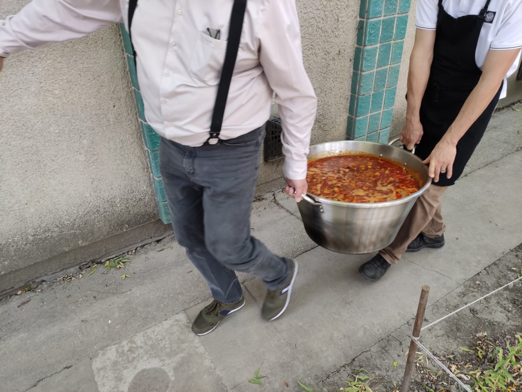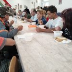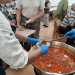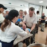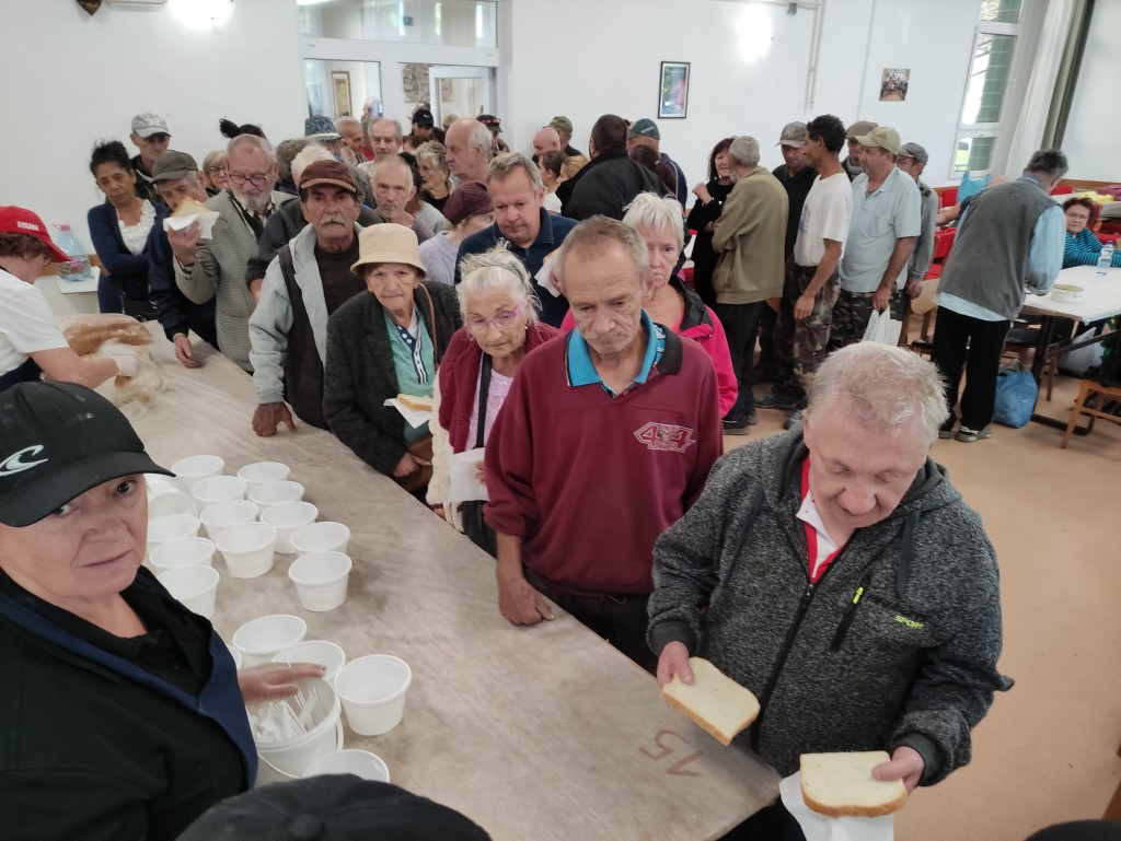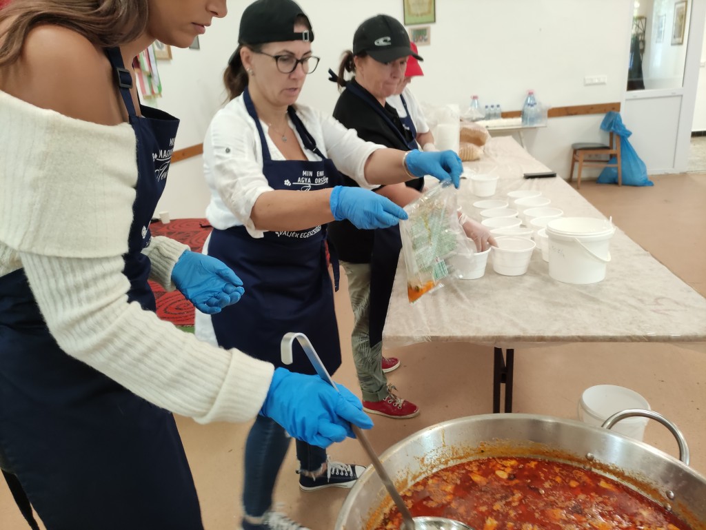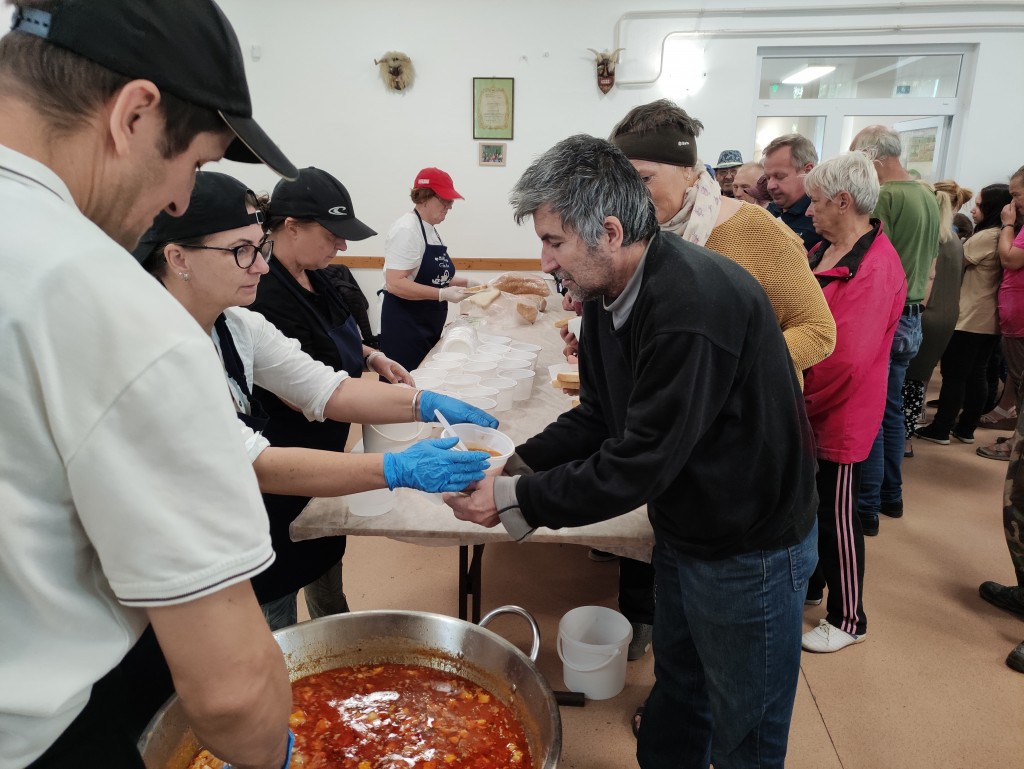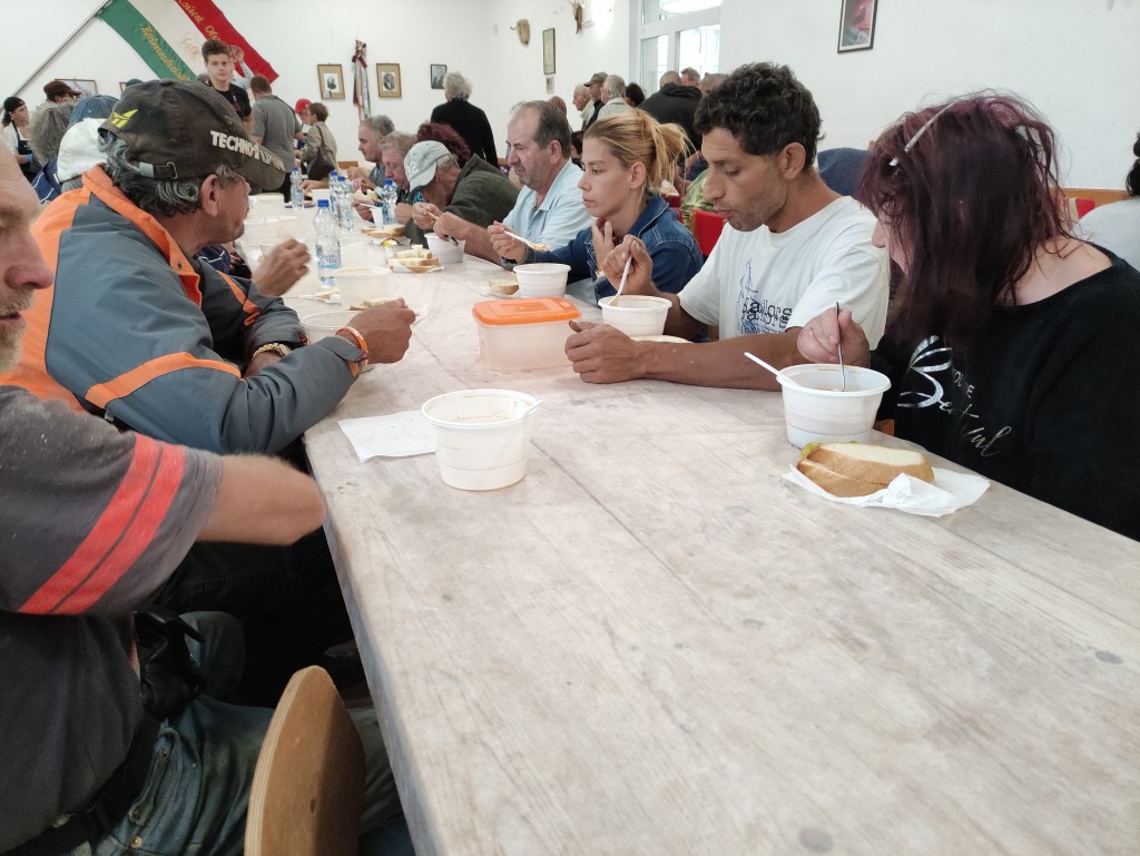 A már bevált gyakorlat szerint azok kapták meg elsőnek az ebédet, akik helyben fogyasztották el, majd azok, akik haza szerették volna vinni. És persze repeta is jutott.