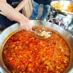 Gulyás, tepertős fánk és fagyi volt az ételosztás menüje