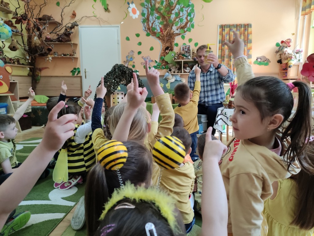 – Azért fontosak nekünk a méhek, mert virágport gyűjtenek, és mézet csinálnak – osztotta meg velünk tudását Szabó Gréti. A kislány hozzáfűzte nem fél a méhektől, melyekkel a kaptárnál és az udvaron szokott találkozni. És persze a mézes teát is szereti. Tóth Marcell, Gréti ovistársa azt mondta, azért szereti a méhecskéket, mert azok beporozzák a virágokat és mert mézet „csinálnak”. Apró Norina azt is tudta, hogy ha nem lennének méhek, az emberek sem lennének (s végül nem volna sem zöldség, sem gyümölcs, sem gabona), de a méz jó a torokfájásra is.