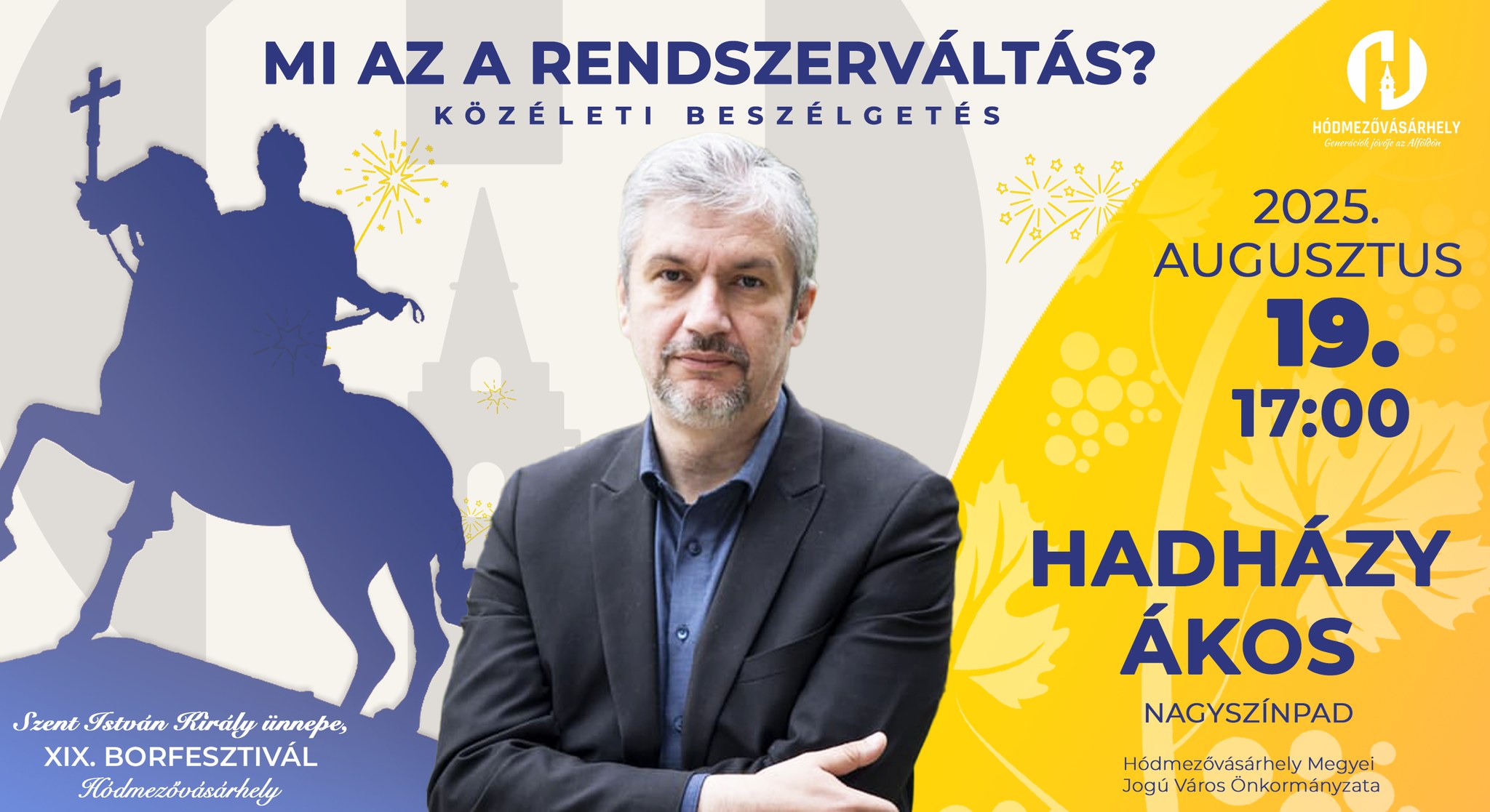 Mi az a rendszerváltás címmel rendezik meg a harmadik, egyben az idei borfesztivál utolsó közéleti beszélgetését, melynek vendége Hadházy Ákos lesz. A független országgyűlési képviselővel Márki-Zay Péter fog beszélgetni.
