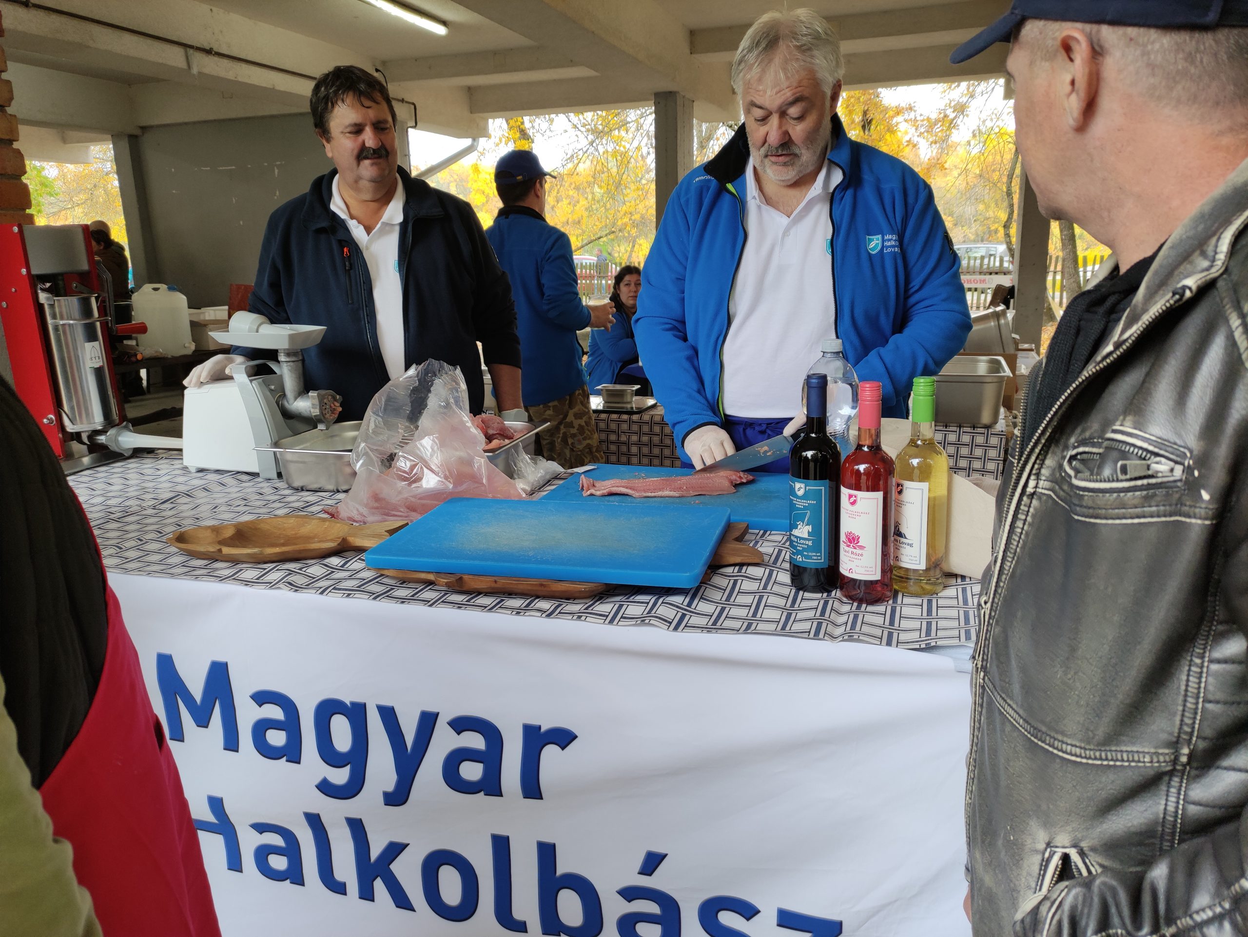 Készült azonban különlegesség is: halkolbász és „halfishteak” a tizenhat éve alapított Magyar Halkolbász Lovagrend csapatának jóvoltából.