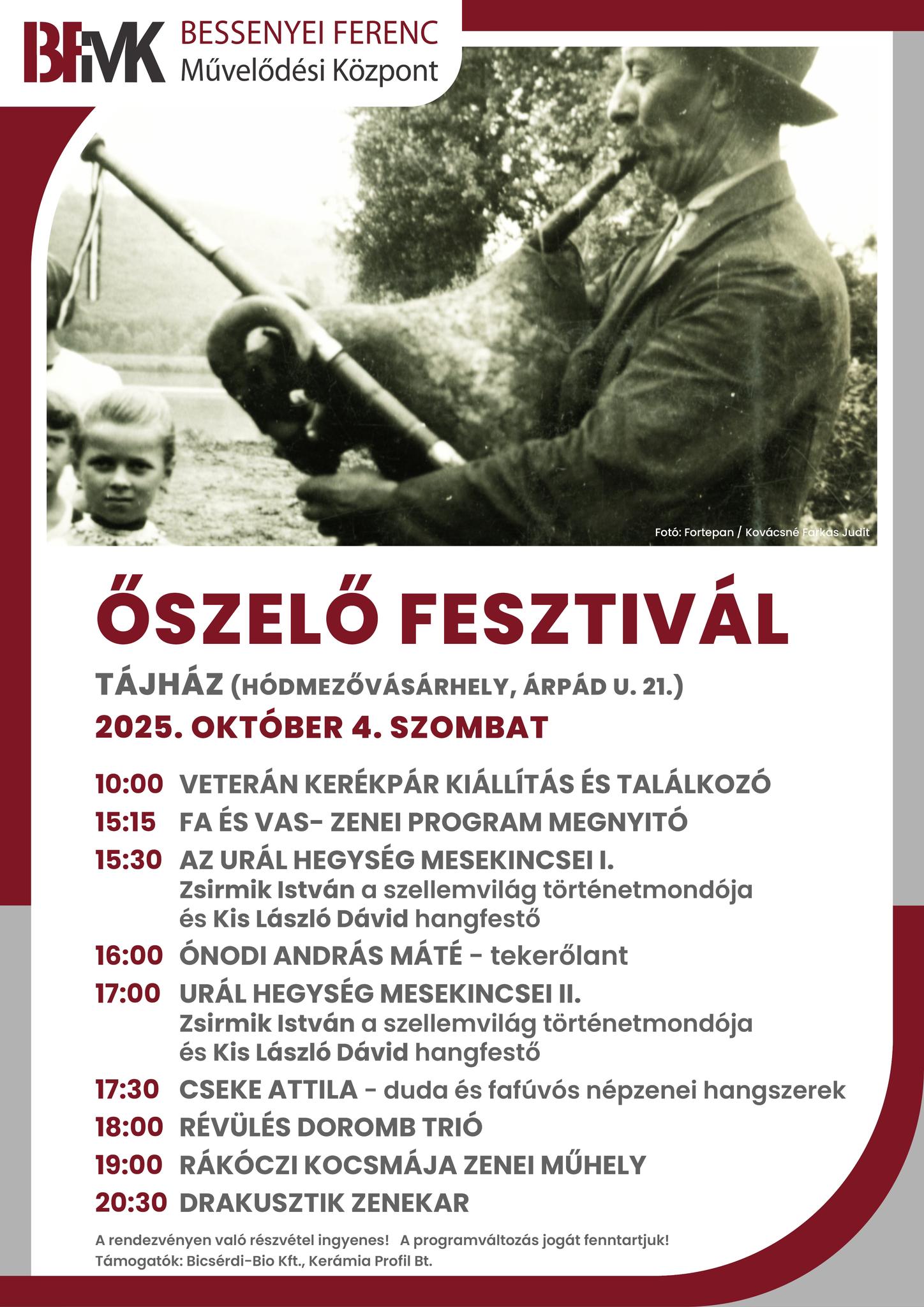 Szombaton délelőtt 10 órakor az Árpád utcai tájházban kezdődik az Őszelő Fesztivál, amelyen lesz veterán kerékpárkiállítás és révülés is.