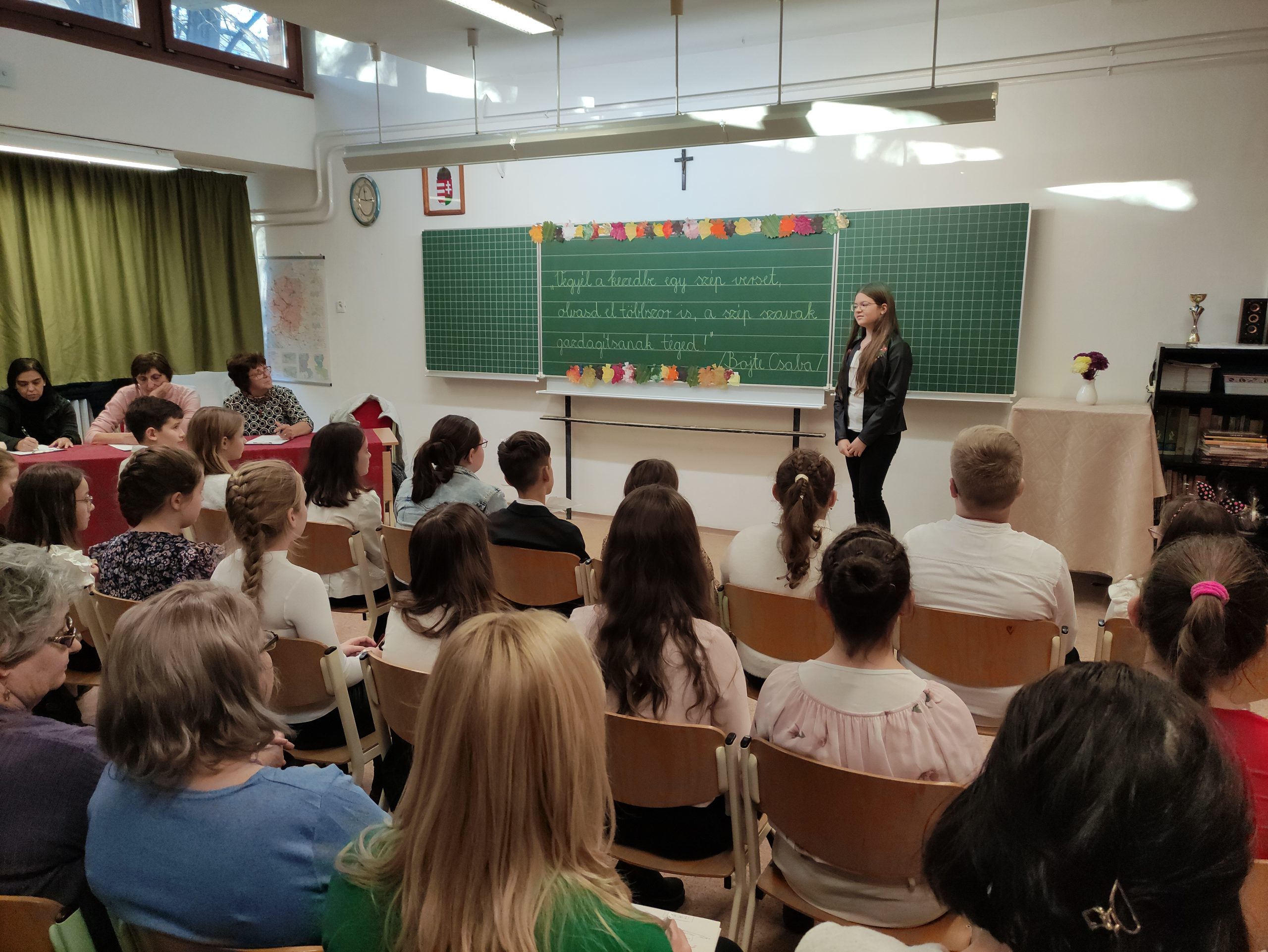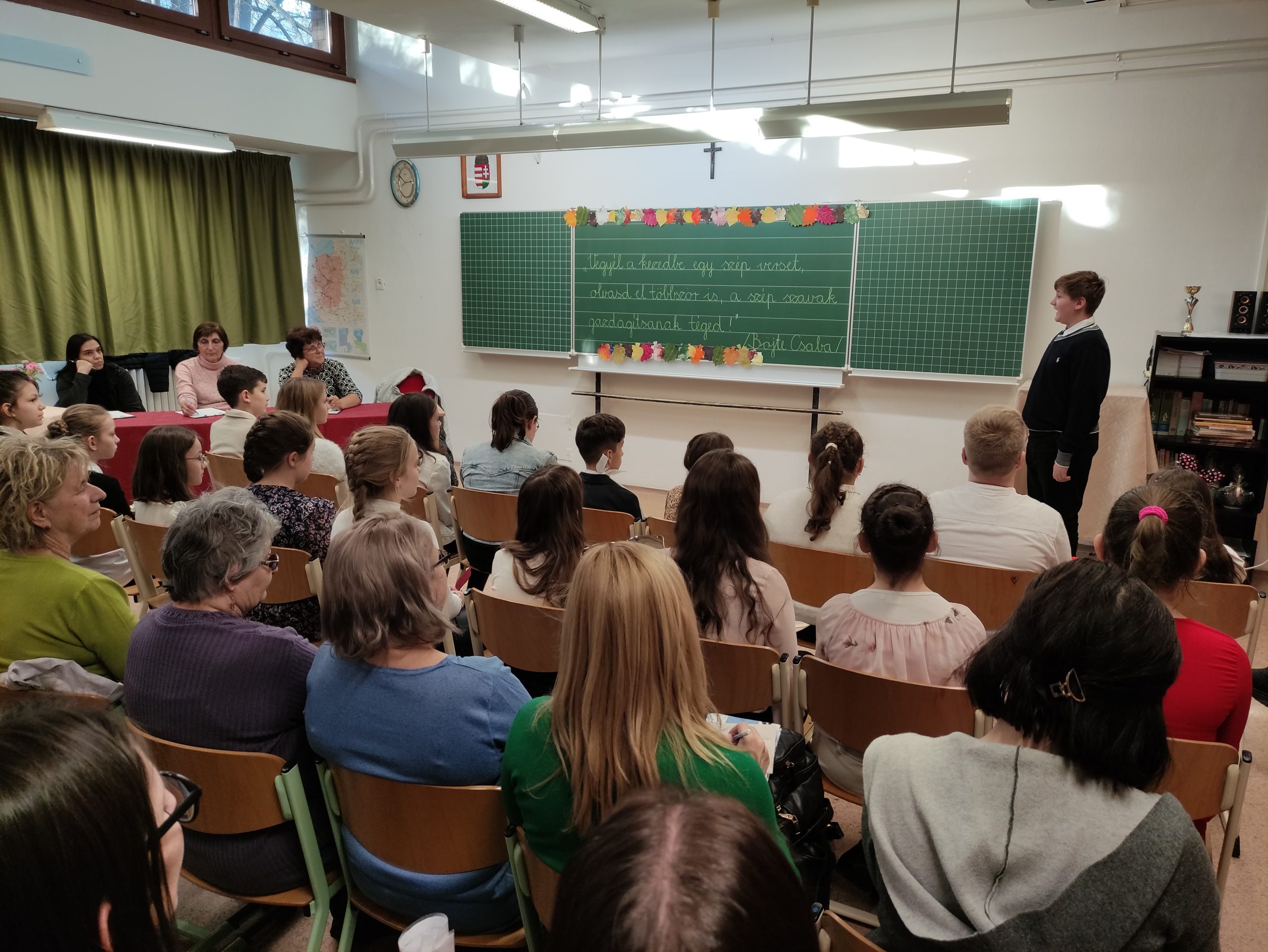 Az 5-6. osztályosok és a 7-8. osztályosok külön versenyeztek. A nevezések során az iskolák nem 2-2, hanem 3-3 diákot delegáltak a versenyre, ez azt jelenti, hogy olyan sokan szavaltak az iskolai megmérettetéseken, hogy a zsűri nem tudott dönteni, így mi megengedtük, hogy mindenki elhozhassa legügyesebb, legjobb szavalóját – mondta Juhászné Wolf Edit, a Szent József Kertvárosi Katolikus Iskola igazgatója.
