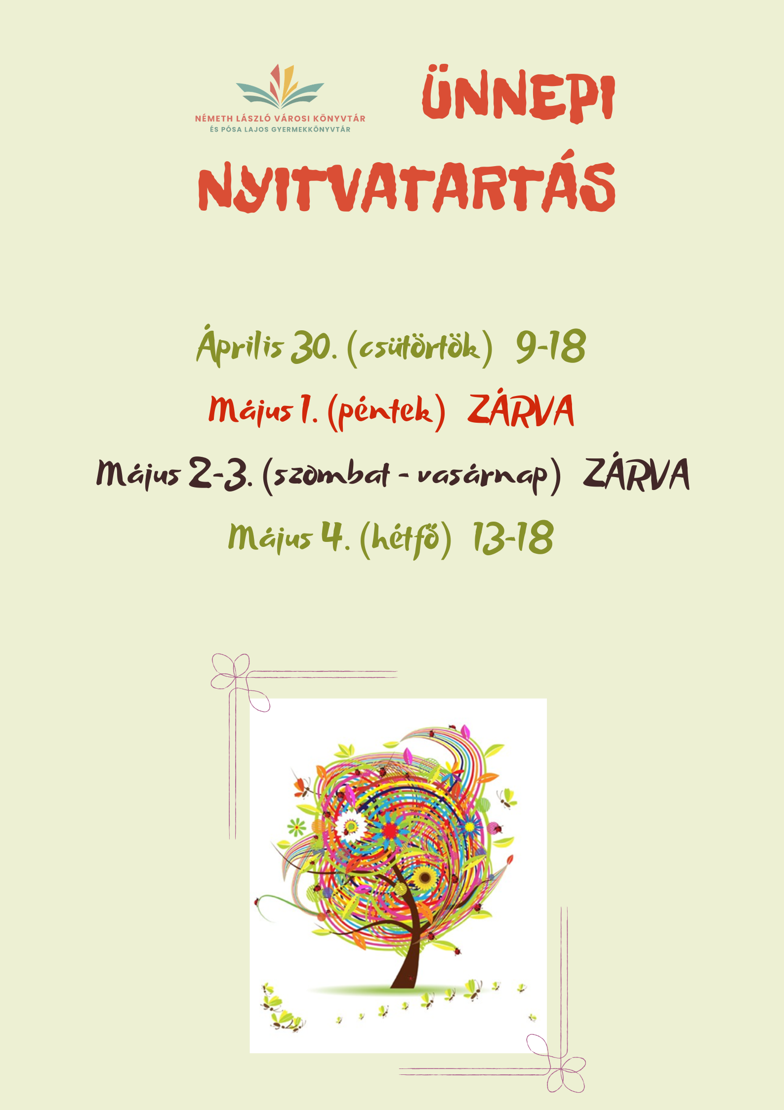 Három napig zárva lesz a könyvtár KultúraNapi kiemeltRövidenVárosunk Írta: Munkatársunktól Megjelent: 2026. április 30. csütörtök Megosztás Pénteken és szombaton május elseje miatt, vasárnap pedig egyébként sem szokott nyitva lenni. Hódmezővásárhelyhosszú hétvégeKönyvtármájus 41Németh László Városi KönyvtárVásárhelyvásárhelyi hírekzárva Megosztás