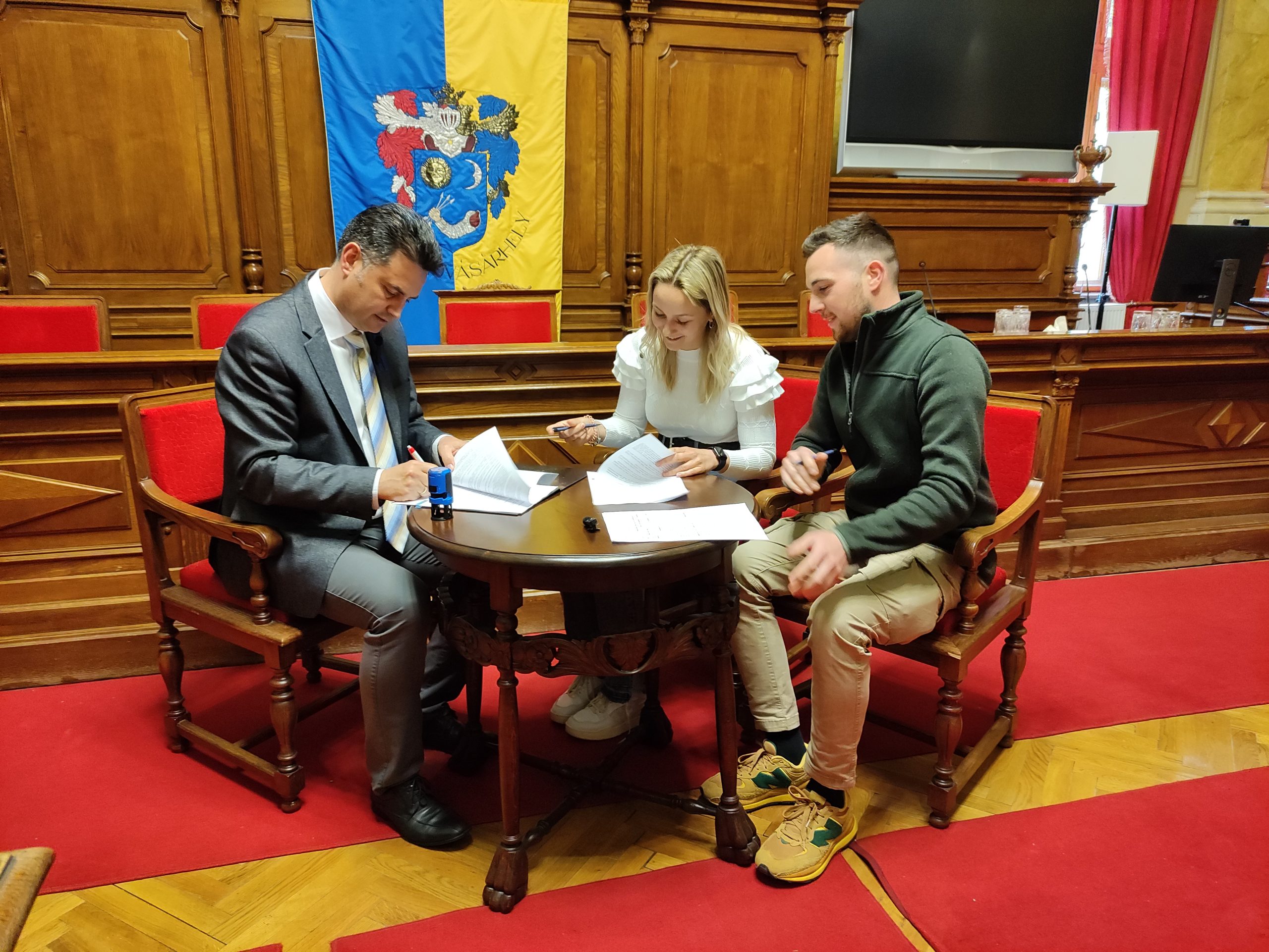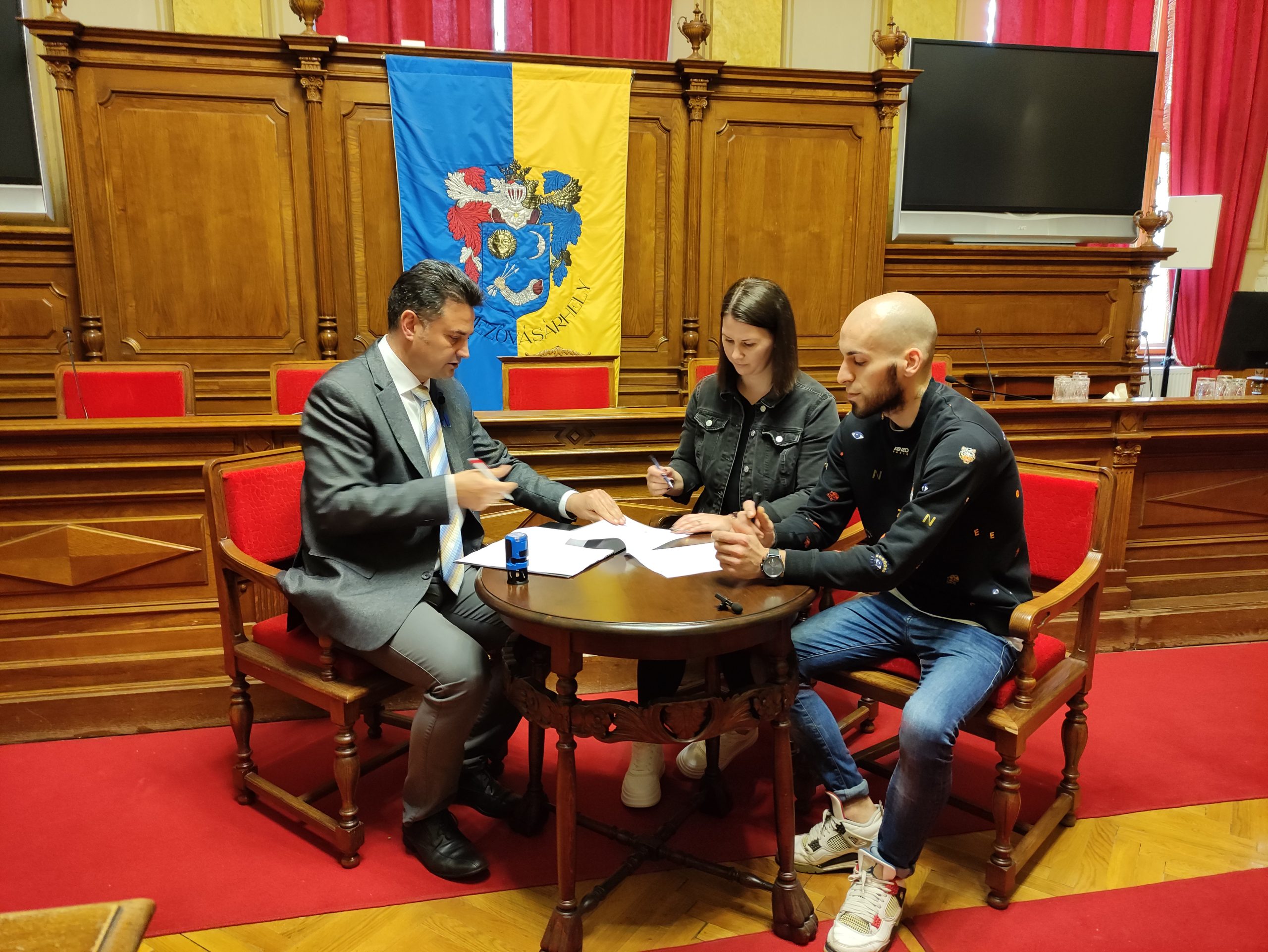 Hat párral (két párnak nem felelt meg ez az időpont) a város nevében ma délután a városháza dísztermében írta alá a szerződéseket Márki-Zay Péter polgármester. Kiderült, hogy a párok egy része eddig a szülőknél lakott, mások albérletben élnek. Mindannyiuk számára hatalmas előrelépés lesz a „saját” otthon.