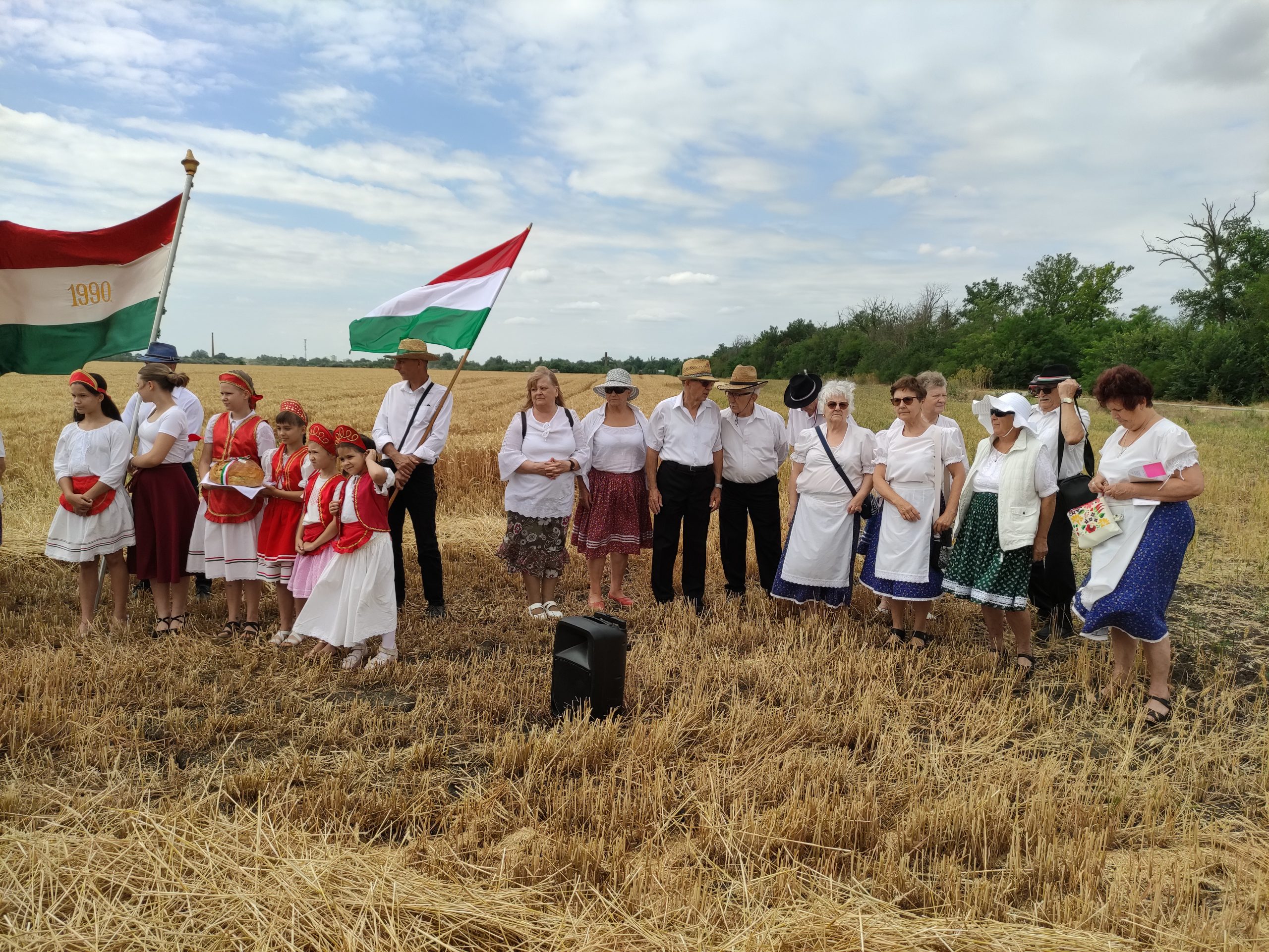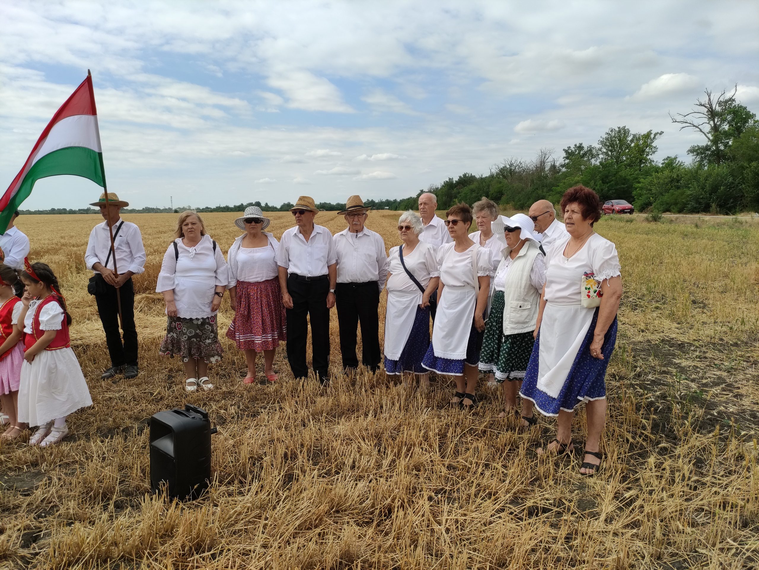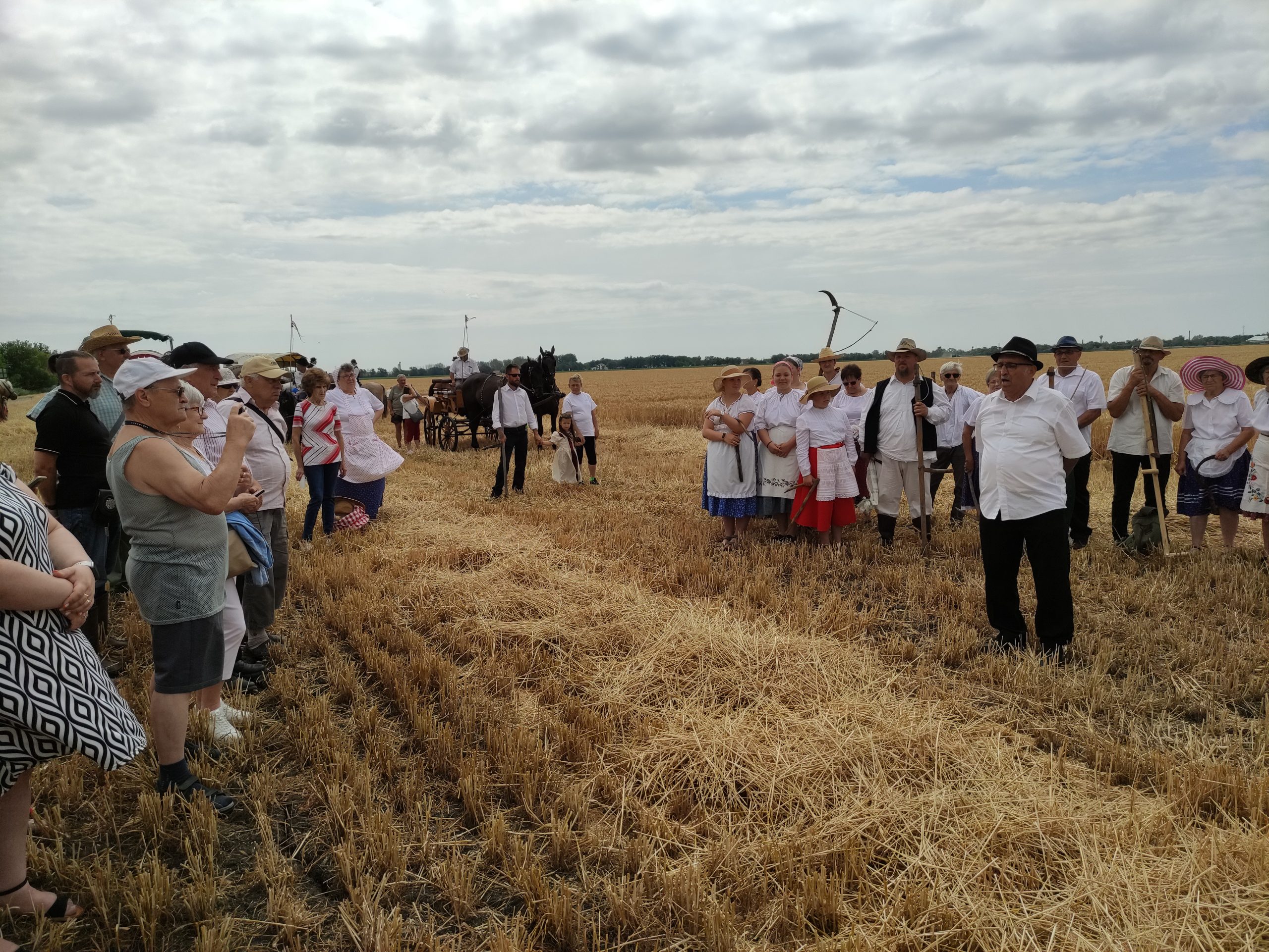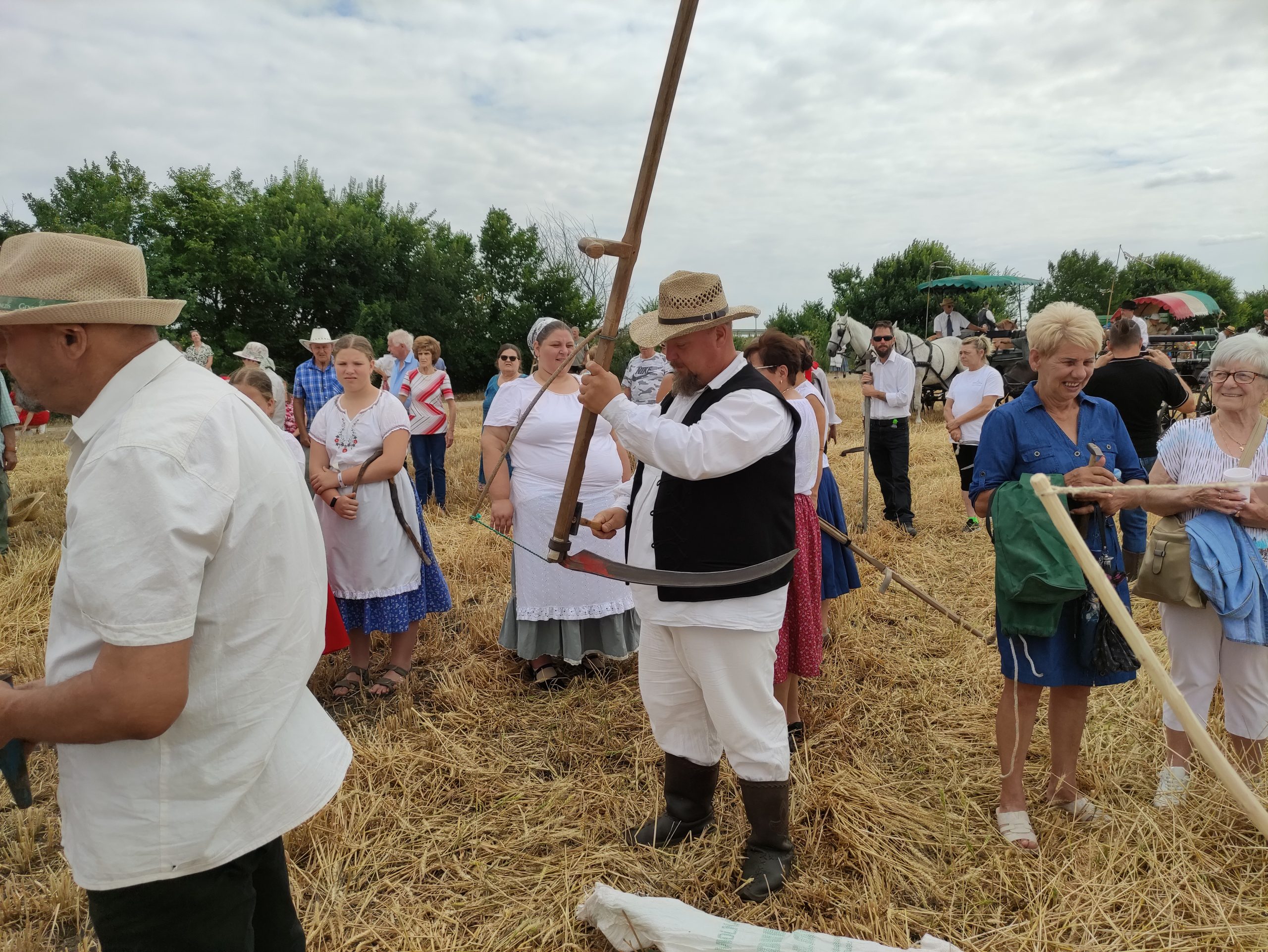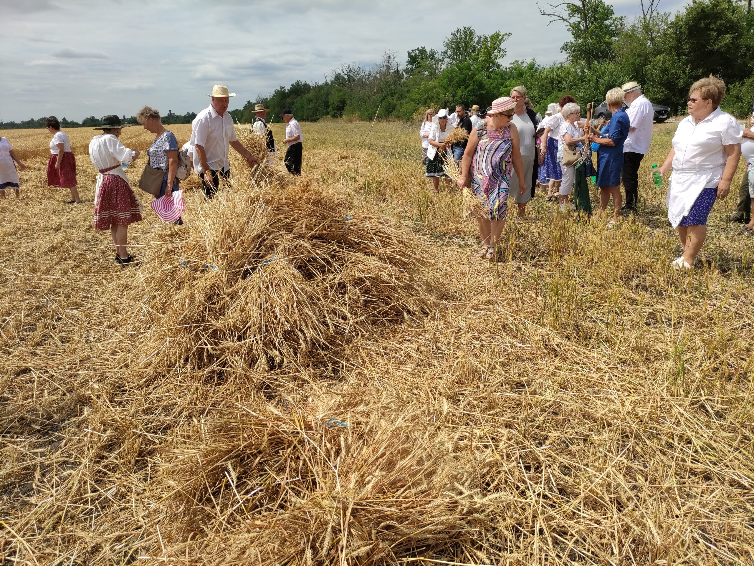 A gazdák által tapasztalt szomorú fejlemények az aratóünnep résztvevői jókedvét nem vették el. Néhányan kisebb gyerekkel is érkeztek. Dán István és felesége, Dán Istvánné Nagy Ildikó azt mondták, hogy minden esztendőben eljönnek az aratóünnepre, s most elhozták a második osztályt végzett unokájukat, Dán Bencét is. – Édesapámnak és nagyapámnak még voltak annak idején jószágaik, tehenük és lovuk is otthon, így az ellátásukhoz kaszálni is kellett. Édesapám ezért engem is megtanított rá, ahogy arra is, hogyan kell kikalapálni és kifenni a kaszát – árulta el Dán István, aki azonban nem az aratóbanda tagja volt, hanem a menet hangulatát adó zenekaré. Hozzátette, hogy az aratóünnep a gyerekkori élményeit idézi fel, Bencét pedig most azért hozták magukkal, hogy ő is lássa, régen hogyan takarították be a kenyérnekvalót.